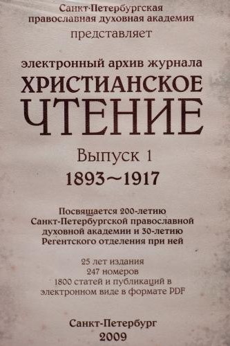В Интернете появился электронный архив научно-богословского журнала «Христианское чтение» за 1893-1917 годы12 марта по адресу spbpda.ru размещен в свободном доступе для всеобщего использования электронный архив научно-богословского журнала Санкт-Петербургской духовной академии «Христианское чтение» за 25 предреволюционных лет — с 1893 по 1917 год. В основу данного электронного ресурса положен материал DVD-диска «Христианское чтение: Электронный архив журнала. Вып. 1. 1893-1917. Спб., 2009», изданного в прошлом году и посвященного 200-летию духовной академии и 30-летию Регентского отделения при ней. Общее руководство проектом осуществляет ректор СПбДА епископ Гатчинский Амвросий, а в сканировании и создании электронных книг, библиографических описаний и веб-интерфейса задействованы студенты семинарии и сотрудники академической библиотеки. Журнал выходил с 1821 по 1917 год, затем издание было возобновлено в 1991 году. С 2009 года журнал выходит в новом формате в соответствии с требованиями, предъявляемыми к светским ВАКовским журналам. Электронный архив будет пополняться по мере сканирования и подготовки новых электронных книг.