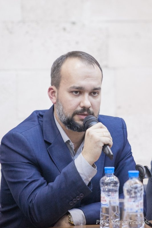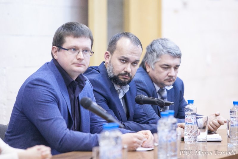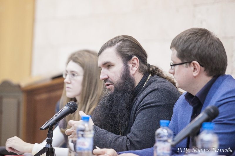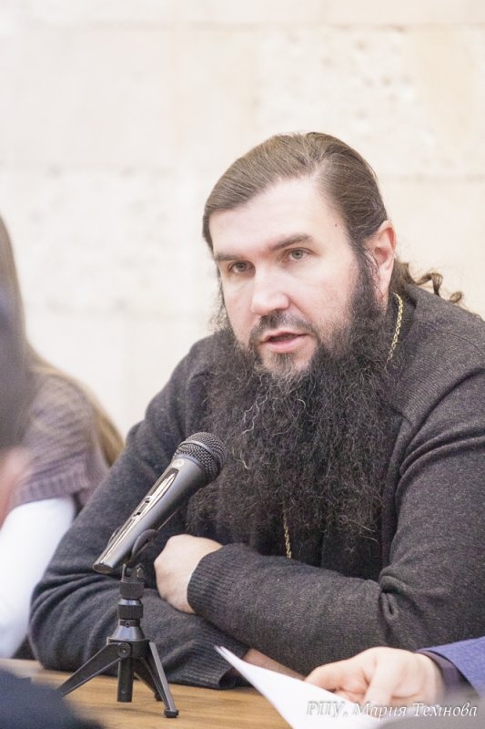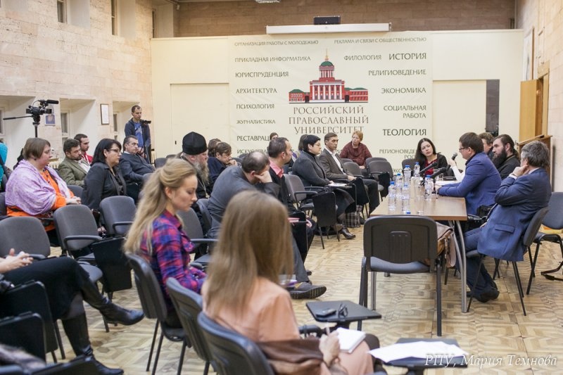Организатором мероприятия и модератором дискуссии выступила заведующая кафедрой журналистики и связей с общественностью РПУ Елена Викторовна Жосул. В ходе обсуждения большинство участников согласилось с тем, что в основании украинского конфликта большую, а возможно, и определяющую роль, играет культурно-религиозный фактор. Религиозные противоречия, сопротивление православным ценностям как культурообразующей константе русского мира проявили себя на всех этапах конфликта на Украине - как на стадии нагнетания политического напряжения, так и на стадии открытого вооруженного противостояния. Описывая суть конфликта, Игорь Друзь отметил: "В данном случае мы действительно видим конфликт цивилизаций. Нам пытаются представить то, что происходит в Новороссии, как борьбу кланов. Всё это вздор. Потому что никакие кланы не смогли, например, развязать войну между Рязанской и Московской областью в России. Развязать войну можно там, где есть противоречия. Донбасс - это часть Русского мира, а Галиция – часть униатского, католического. Другие области колеблются между этими полюсами". Протоиерей Андрей Новиков в своем выступлении обратил внимание на длительный процесс работы украинских медиа с общественным мнением, внедрение антироссийских и антиправославных идей, предвзятое освещение некоторыми СМИ действий Московского Патриархата и поддержку ими идей автокефалии: "За последнее время выросли два поколения людей, очень жестко настроенных против церковного единства, против Русской Православной Церкви. И когда пришел "час X", это всё оказалось очень востребовано. Особенно я имею ввиду второй майдан. Здесь не стоит обольщаться, идет речь не только о политических и межгосударственных отношениях, а о полном уничтожении Русского мира", - заметил он. Сложность же религиозной ситуации на Украине, как выразился Ростислав Ищенко, выражена в том, что "…линия разлома прошла следующим образом: с одной стороны - УПЦ Московского Патриархата, а против неё - все остальные религии и конфессии". Такое состояние прослеживается и по солидарной активности различных конфессиональных групп, о которой можно судить в том числе и за счет освещения обсуждаемых событий в СМИ. Подробнее об усилиях и роли в текущем украинском конфликте нетрадиционных религиозных организаций и сект высказался Игорь Иванишко. Отметив небывалую консолидацию различных религиозных объединений на фоне общей нестабильности, эксперт констатировал существование искусственно созданного информационного вакуума, в котором оказались правозащитные центры Украины, занимающиеся наблюдением за деятельностью сект: "Что же касается адекватного освещения религиозной ситуации на Украине с точки зрения правозащитных центров, оно было приостановлено". В ходе выступлений докладчиков и последовавшей за ними дискуссии также был затронут ряд вопросов, касающихся позиции различных СМИ в отношении украинского конфликта. Среди них - вопрос о необходимой степени освещения православными изданиями украинских событий, проблема оценки православными авторами религиозной ситуации, сложившейся на фоне общего кризиса на Украине, задача выработки последовательной политики, которой стоило бы придерживаться православным информационным ресурсам для общего оздоровления напряженной медийной ситуа