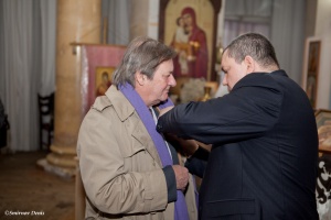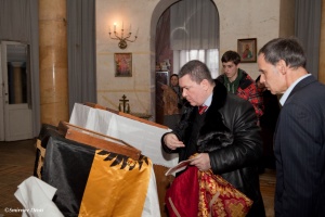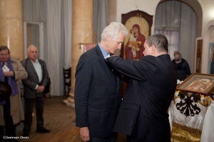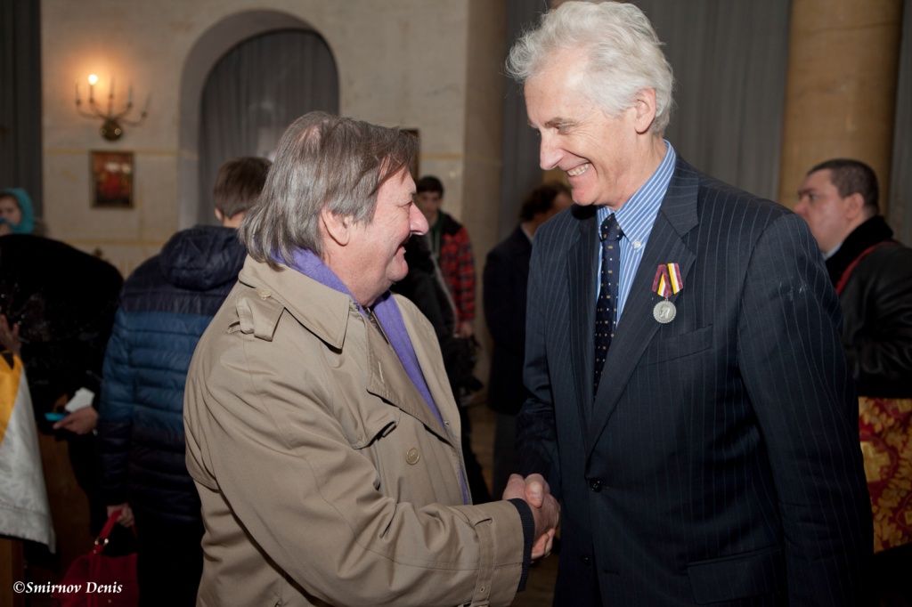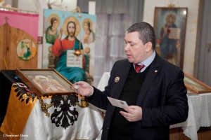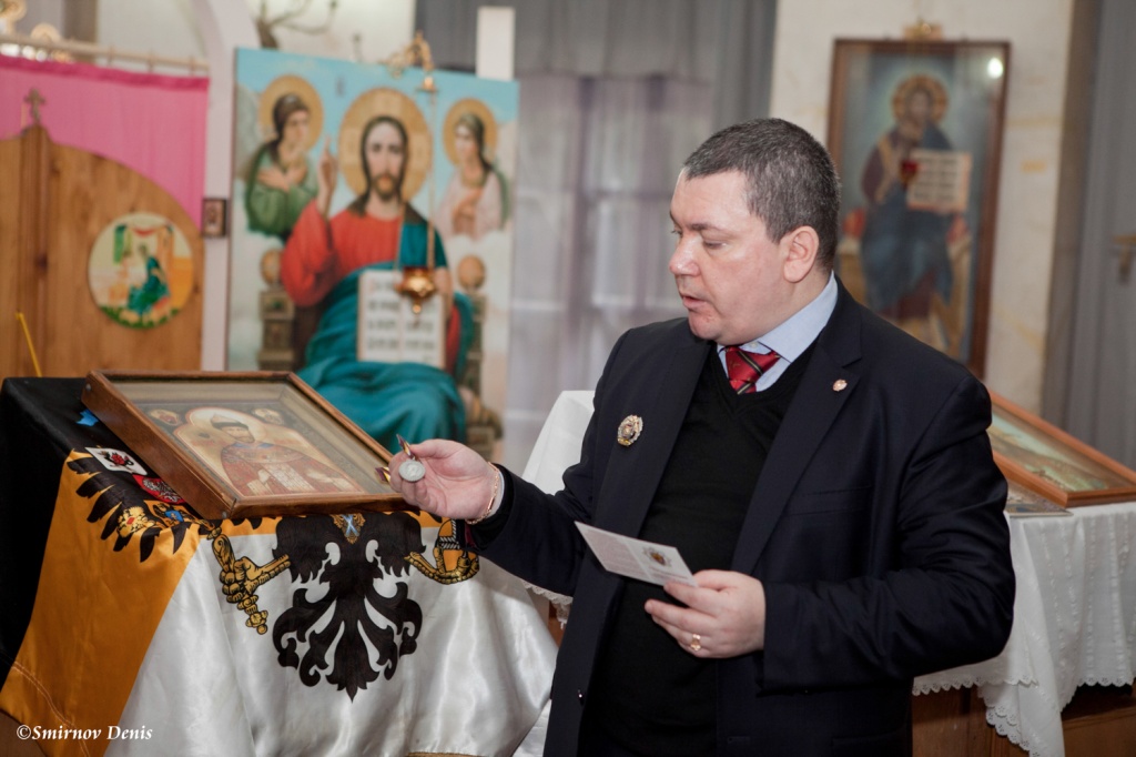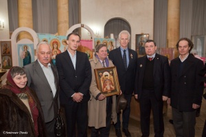 Чудотворная мироточивая икона Царя Николая побывала в родовом храме князей Волконских20 декабря 2014 г. Чудотворная мироточивая икона Святого Царя-Мученика Николая Второго в сопровождении начальника Войсковой Православной Миссии Игоря Евгеньевича Смыкова прибыла в пределы фамильного храма-усыпальницы во имя Святителя Димитрия Митрополита Ростовского и всея России Чудотворца древнейшего российского рода князей Волконских в Суханове. Организаторами визита выступили: МООО "Община Суханово" и Войсковая Православная Миссия. Суханово известно с XVII в. Первоначально это была небольшая царская вотчина, включавшая также соседние деревни Боброво и Лопатино. В конце XVII в. Пётр I пожаловал Суханово боярину Тихону Никитичу Стрешневу, потом Дмитриевых-Мамоновых, Гурьевых, и наконец, Мельгуновых, - Суханово перешло в род князей Волконских в конце XVIII столетия, благодаря брачной связи их с предыдущими и увенчалось именем исторической личности генерал - фельдмаршала светлейшего князя Петра Михайловича Волконского, одного из самых выдающихся героев Отечественной войны, «Отца Российского Генерального штаба», одного из создателей российской военной разведки, разработчика плана взятия Парижа в 1814 году, и в бытность генерал-адъютантом его Величества, «правой рукой» императора Александра I-го, сопровождавшего его во время триумфального въезда во французскую столицу. Перед мироточащей и благоухающей святыней был прочитан акафист. Начальник ВПМ Игорь Смыков рассказал об истории этого Чудотворного образа Царя Николая Второго. Затем под сводами старинного храма состоялась церемония награждения в память Столетия начала Великой войны. Потомок древнего рода Волконских - князь Олег Валентинович Волконский и правнук Председателя Совета министров Российской империи Петра Аркадьевича Столыпина - Николай Владимирович Случевский были награждены Юбилейными медалями "В память Великой войны" - "За многолетние миссионерские и просветительские труды, любовь к Богу, верность Царю и Отечеству". Затем во дворце усадьбы Волконских состоялся концерт дворянской музыки.