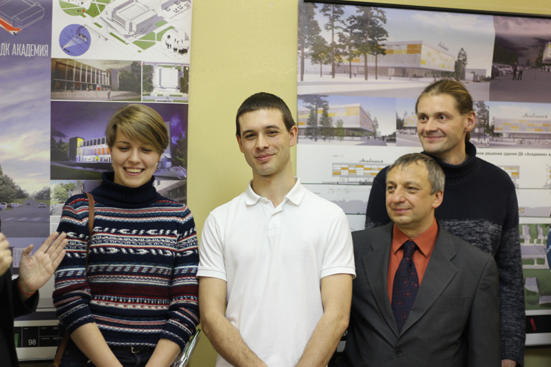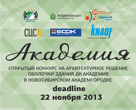 1 октября 2013: Общественное негативное мнение о новом проекте ДК «Академия» в новосибирском Академгородке заставило Сибирский центр содействия архитектуре (СЦСА) объявить конкурс на лучшее решение фасадов здания. К участию в конкурсе приглашаются проектные организации, практикующие архитекторы и студенты профильных вузов. Как рассказала директор СЦСА Татьяна Иваненко, выполнившее проект архитектурное бюро ООО «Проект-Согласование» справилось с объемным и планировочным решением, указанным в техническом задании, однако компании не удалось сохранить целостность архитектурного ансамбля и масштаб застройки ул. Ильича. Кроме того, проектировщики выбрали «самый дешевый фасад» с двумя оттенками бежевого керамогранита, что не понравилось жителям Академгородка и интернет-общественности. Совместно с общественным фондом «Академгородок», районной администрацией и мэрией СЦСА решил провести открытый конкурс на архитектурное решение фасадов ДК, в жюри которого будет сидеть 12 архитекторов-экспертов. По словам арт-директора СЦСА Александры Архиповой, участники конкурса должны представить внешний вид здания и смету, желательно уложившись в рекомендованный лимит — 5 тыс. руб. за кв. м фасада. Победитель конкурса «Академия» ( по решению«Жюри экспертов») получает денежную премию от Организатора конкурса (СЦСА) в размере 60 000 рублей и включается в авторский коллектив генпроектировщика. Работы, поданные на конкурс «Академия» без конкурсного взноса включаются в конкурсную программу Независимого национального архитектурного рейтинга ЗОЛОТАЯ КАПИТЕЛЬ 2014 в специальной номинации и рассматриваются «Жюри рейтинга» в рамках «Регламента рейтинга» вне зависимости от результатов конкурса «Академия». 13 января 2014:С 16 по 27 января 2014 г. в фойе ДК «Академия» в новосибирском Академгородке пройдёт выставка архитектурных решений фасада ДК по результатам открытого архитектурного конкурса. 21 января в 18:00 на выставке пройдёт «общественное рейтингование» и подведение итогов конкурса. В конкурсе приняли участие девять проектов: Андрей Буслаев и Николай Вяткин («A.B.C.D group»), Юрий Чаплыгин (НП «Сибирский центр «ЛАСПС»), ООО «Сибпроектстрой», ООО «Тильке и Партнёры-Сибирь», Алексей Карнаухов («AB SolArt»), Дарья Авксентюк-Каменская, Анастасия Кудряшова, Станистав Вергасов, Софья Панова. Лучший проект будет выбран жюри конкурса из девяти человек во главе с главным архитектором Новосибирска Владимиром Фефеловым. Члены жюри, принимая решение, будут опираться как на результаты народного голосования, так и на стоимость того или иного проекта, на то, как он вписан в рельеф и так далее, сообщила директор фонда «Академгородок» Наталья Пинус. 20 января 2014: Как подтверждает директор СЦСА (Сибирский Центр Содействия Архитектуре) Татьяна Иваненко, в конкурсе участвует только четыре проекта (проект «AB SolArt». Архитектор Алексей Карнаухов; проект архитекторов Станислава Вергасова и Софьи Пановой; проект «Тильке и Партнеры-Сибирь». Архитектор Ханс-Кристоф Пичь; проект архитектора Дарьи Авксентюк-Каменской). Остальные проекты сняты с конкурса, так как предлагают независимые архитектурные и объёмно-планировочные решения ДК «Академия», не соответствующие условиям объявленного конкурса. В новосибирских электронных СМИ с 13 по 20 января была опубликована визуальная инфор
