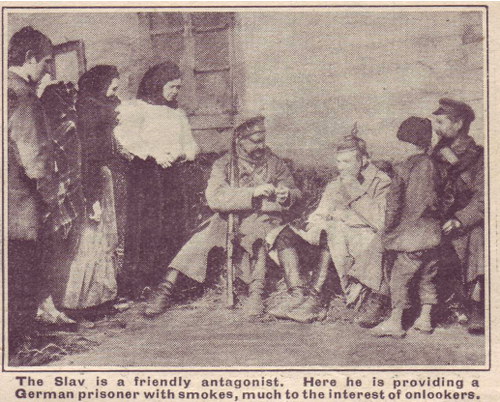 Война в картинках. В этот день почти 100 лет назадПродолжаю виртуально раздавать миру экспонаты из моей коллекции исторической макулатуры. На днях исполнилось 100 лет со дня выхода одного из номеров британского журнала The War Illustrated («Война в картинках»), который я как-то по дешевке купил на Ebay. Как пишет Википедия, журнал начали выпускать в августе 1914-го – через полмесяца после начала Первой мировой войны. Война закончилась – издание прекратили, но возобновили в сентябре 1939 года, когда стали поступать картинки уже со Второй мировой войны (у меня есть один выпуск журнала и из тех времен, дойдет время до юбилея – постараюсь тоже выложить). В 1947 году выпуск снова прекратили и, надеюсь, до его третьего запуска дело не дойдет. Полностью отсканированный 28-страничный выпуск от 20 февраля 1915 года в pdf-формате выложен на Яндекс.диске. Но для тех, кому лень качать pdf объемом 35 мегабайт, избранное – прямо здесь. ![]() ![]() Журнал открывается статьей Герберта Уэллса «Изменит ли война Англию?». Много букв, да еще и с продолжением в следующем номере, которого у меня нет, да и вообще чтение не столь увлекательное, как «Война миров» или «Машина времени». Но если вкратце, то ответ Уэллса на поставленный вопрос – да, изменит. Это видно уже из первого предложения. ![]() Ну а дальше почти сплошные картинки. События во Франции. Нужно быть готовыми ко всему. Немецкие кавалеристы считают, что входят в опустевшую французскую деревню, но держат винтовку и пистолет наготове, на случай нападения союзников (я так понимаю, британских) или местных жителей. ![]() Британский солдат спрашивает дорогу у юноши из французской деревни. ![]() Далее журнал переходит к событиям на восточном фронте. Русские солдаты заносят знамена в штаб армии под вооруженным эскортом. ![]() Славянин – приятный противник. Он делится куревом с германским пленным, и за этим с любопытством наблюдают окружающие. ![]() Война – серьезное дело? Вовсе нет! Два веселых русских артиллериста в землянке. ![]() Продакт-плейсмент начала двадцатого века. Солдаты британского спортивного батальона все как один читают The War Illustrated. ![]() Ну и небольшая подборка фотографий на тему торгово-экономических отношений на охваченных войной территориях. Германские солдаты покупают фрукты на рынке в Брюсселе и даже платят за них. Впрочем, журнал предполагает, что такое стремление к честной сделке объясняется присутствием фотографа поблизости. ![]() Французские солдаты на рынке. Несколько пехотинцев покупают продукты у крестьянки на севере Франции. ![]() Щедрые русские угощают австрийских военнопленных на улицах Лемберга (Львова).