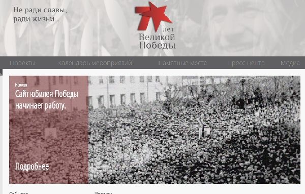 Создан сайт в честь юбилея ПобедыПользователей сети приглашают принять участие в наполнении сайта, посвященного 70-летию ВОВ. Главное назначение онлайн-площадки — аккумулировать информацию обо всех событиях в городе, которые запланированы в рамках подготовки и празднования юбилея Победы. За 70 дней до 9 мая в День защитника Отечества будет запущен сайт 70nsk.ru, посвященный 70-летию Победы в Великой Отечественной войне. Главная задача сайта – объединить информацию о различных мероприятиях, которые будут проводиться в городе в рамках подготовки и празднования юбилея Победы. Все данные будут доступны в двух форматах – в виде специального календаря событий и в виде новостной ленты. Кроме того, на сайте появится интерактивная карта, где будут отображены мероприятия, проводимые в настоящем времени, и места в Новосибирске, которые связаны с его военной историей. Помимо мероприятий и карты, будут представлены архивные материалы, фильмы, посвящённые военным событиям, фотографии, проекты, рассказывающие о ветеранах и др. Новосибирские организации, творческие коллективы и просто неравнодушные горожане имеют возможность принять участие в работе сайта или просто рассказать на его страницах о своих мероприятиях, посвящённых Победе. Информацию и вопросы можно отправлять на электронный адрес 70VictoryDay@gmail.com.