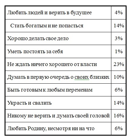 Протоиерей Андрей Хвыля-Олинтер. Проблемы воспитания здоровой молодежи России в современных условиях духовно-нравственного кризисаДоклад на круглом столе в Государственной Думе Федерального собрания РФ «Современная российская молодежная антинаркотическая политика в условиях запуска Национальной системы комплексной реабилитации и ресоциализации лиц, потребляющих наркотические вещества в немедицинских целях. Разработка Критериев оценки деятельности центров по реабилитации и ресоциализации наркозависимых» (г. Москва, 18 февраля 2015 г.) Негативные процессы в молодежной среде являются проявлением глубинных социальных болезней всего общества. «Мне больно сегодня об этом говорить, но сказать я об этом обязан. Сегодня российское общество испытывает явный дефицит духовных скреп» - эти слова из послания Федеральному собранию Президента В.В. Путина 12 декабря 2012 года очень емко отражают причину происходящих в обществе разрушительных процессов. Приведем четыре примера, характеризующие состояние нашего общества. Первый пример. Вот какова, согласно социологическим исследованиям, главная заповедь современного молодого россиянина (см. http://www.rosbalt.ru/main/poll/757/results/ от 27.09.2013 г.)
