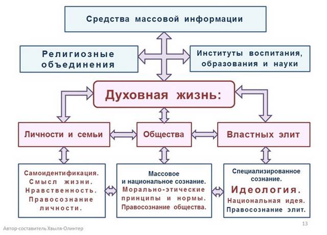 И человек, и государство нежизнеспособны, если у них отсутствует смысл жизни, идеологический базис. Статистические данные доказывают, что идейно-духовный уровень российского общества XX-XXI века коррелирует с коэффициентом жизнеспособности страны. Духовно-нравственный кризис, усилившийся в наше время, резко ослабил этот показатель, затронув в первую очередь молодежь. В то же время бесспорно, что развитие духовности и нравственности, иерархия смыслов жизни подрастающего поколения зависят от качественного наполнения духовно-религиозного пространства России. В Стратегии национальной безопасности Российской Федерации до 2020 года указано следующее: «Силы национальной безопасности обеспечивают сохранение культурного и духовного наследия, доступность информации по различным вопросам духовной жизни общества... Решение задач обеспечения национальной безопасности в сфере культуры в среднесрочной и долгосрочной перспективе достигается за счет укрепления духовного единства многонационального народа Российской Федерации,... создания системы духовного и патриотического воспитания граждан России». Защиту и позитивное развитие образа, способа и стиля жизни российской молодежи и призвана обеспечивать система национальной безопасности России. Эффективность этой системы определяется многими факторами. Одни из важнейших - духовное, нравственное и правовое содержание российской культуры. Как известно, на духовную жизнь населения влияет очень много различных факторов. И они же могут влиять друг на друга, как это показано на следующем слайде.