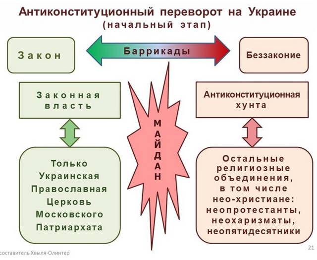 Нарушение духовных законов всегда влечет к искажению или отрицанию расположенных ниже по иерархической лестнице нравственных и правовых законов. Яркий пример тому - сегодняшние трагические события на Украине, в происхождении и развитии которых ведущую роль вместе с правителями-марионетками западных политтехнологов сыграли именно деструктивные религиозные культы, и особенно так называемые неохристиане: неопротестанты (неохаризматы, неопятидесятники). Нарушение духовных законов всегда влечет к искажению или отрицанию расположенных ниже по иерархической лестнице нравственных и правовых законов. Яркий пример тому - сегодняшние трагические события на Украине, в происхождении и развитии которых ведущую роль вместе с правителями-марионетками западных политтехнологов сыграли именно деструктивные религиозные культы, и особенно так называемые неохристиане: неопротестанты (неохаризматы, неопятидесятники).