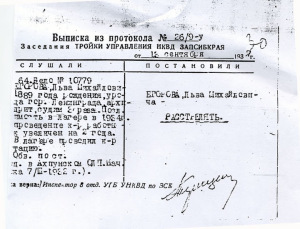 Расстрельный протокол одной из «троек» НКВД В 30-е годы широкое применение снова получили внесудебные расстрелы, в том числе за кражу колосков с колхозного поля. Но если в 20-е годы их применение оправдывали чрезвычайными условиями гражданской войны и иностранной интервенцией, то в 30-е годы таких оправданий уже быть не могло. 5 ноября 1934 года постановлением ЦИК и СНК СССР было создано Особое совещание при НКВД СССР. Этот орган получил право применять ссылку, высылку и заключение осужденных в лагерь. Но фактически образованные на местах «тройки» приговаривали к расстрелу тысячи людей без какого бы то ни было судебного разбирательства и даже без вызова самого обвиняемого. Ну а в лагерях создавались невыносимые условия, обрекающие осужденных на медленную и мучительную смерть. И это при том, что официально в Советском Союзе самым ценным капиталом объявлялась человеческая личность. Пик применения смертной казни пришелся на период с октября 1936-го по ноябрь 1938 годов, когда к расстрелу только официально было приговорено не менее 724 000 человек (некоторые источники сообщают, что в действительности речь может идти о 1,7 миллионах жертв подручных Николая Ежова. Смертная казнь в период сталинского террора, как высшая мера наказания, потеряла истинное правовое значение. Расстрелы в этот период служили, прежде всего, политическим интересам — уничтожению политической оппозиции и укреплению личной власти Иосифа Сталина, который почти на четверть века развязал террор против своего народа.