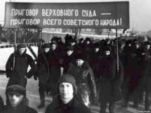 Исполнение приговора над немецкими военными преступниками в Cмоленске. 1945 год Самой громкой в послевоенном СССР стала казнь над власовцами: в 1946 году были повешены сам Власов, а также все генералы и старшие офицеры, входившие в руководство так называемой Русской освободительной армии (РОА — о деятельности этой армии см. заметку «Хроника несуществующей армии«). В 1947 году были проведены судебные процессы над белогвардейскими генералами, принявшими участие в войне на стороне Германии. Но в мае 1947 года выходит указ Президиума Верховного Совета СССР, опубликованный в нашем печатном артефакте. Обратите внимание: этот документ не отменял смертную казнь как таковую, а лишь отменял ее применение – тем самым как бы давал понять, что это послабление временное. Какими бы ни были истинные причины этого указа, он, безусловно, имел политический характер. Дело в том, что смертная казнь даже после ее отмены все равно тайно применялась по решению специальных судов МГБ по делам о контрреволюционных преступлениях. Этим судам, в частности, посвящен один из эпизодов в книге Александра Солженицына «В круге первом». Вместо смертной казни Указ от 26 мая 1947 года вводил другое наказание – 25 лет тюрьмы (см. заметку «Благодарность вождя»). Теперь «смертники» от широкой сталинской души получали «четвертак», т.е. становились фактически «пожизненниками». Через 25 лет лагерей сиделец выходил на свободу больным и обозленным человеком, у которого нет ни друзей, ни работы, ни имущества. Многие уже не могли адаптироваться к новой жизни и возвращались в тюрьму. По воспоминаниям некоторых заключенных, приговоренные к длительным срокам зеки шли на новые преступления, понимая, что ужесточения наказания по отношению к ним уже применить невозможно.