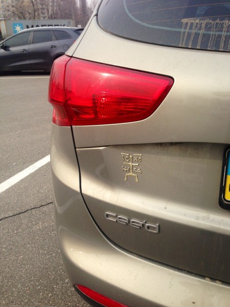 Появилась мысль: почему бы подобное не сделать нам, православным? Я обратился в фирму, которая занималась наружной рекламой, дал им изображение Зверинецкого креста, по которому они и сделали наклейку. Мы разместили эти наклейки на монастырских автомобилях. Интересной была реакция охранников ботанического сада, на территории которого расположен наш монастырь. Они с недоумением рассматривали кресты и спрашивали: «что это у вас за пляшущие человечки на машинах?» Крест ведь изображен на неровной глинистой почве и имеет нечёткие формы. Мы же воспроизвели его строго по контурам — так и получились «пляшущие человечки». Половина Киева ездила на «монастырских» машинахПримечательно, что наклейки со Зверинецким крестом буквально сразу получили широкое распространение. Прихожане нашего монастыря стали активно использовать их на своих автомобилях, рассказали друзьям и знакомым, и затем люди стали специально приезжать, чтобы приобрести себе на автомобиль такую наклейку. Машин со Зверинецким крестом по Киеву стало ездить множество.
