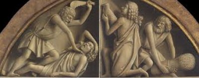 Изображение Креста в первые два века заменялась чаще всего аллегорическими композициями, такими как "Убиение Каином Авеля" или "Исаак, приносимый в жертву Авраамом",