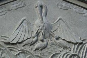 или "Моисей, молящийся с крестовидно распростертыми руками", пеликан, напояющий птенцов своей кровью;