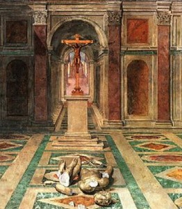 Эпоха Возрождения оказала огромное влияние на отношение Западной Церкви ко многим сторонам своей жизни, в том числе и на почитание Креста. Восточная Церковь, хотя и испытала это влияние, но в меньшей степени. С этого времени пути Запада и Востока разошлись кардинально. Как это проявилось в почитании и изображении Креста, мы рассмотрим в следующей статье. А. Тарасов,