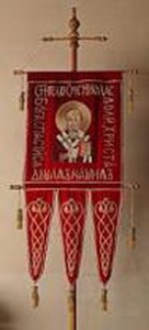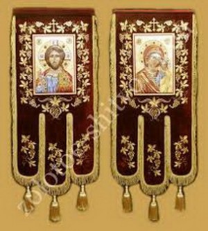 Только на хоругвях медальоны с изображением царей заменены теперь иконами Царя Славы Христа или Пресвятой Богородицы, или святых угодников Божиих. Венчающая хоругвь Христограмма, символизировавшая в эпоху гонений Крест, заменена теперь самим изображением Животворящего Креста.