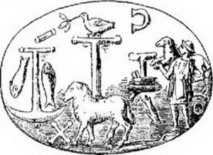либо символическими изображениями якоря, отдаленно напоминающего крест, медного змия, вознесенного в пустыне Моисеем наподобие креста,
