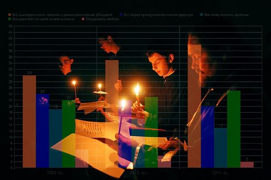 В ходе поста возникает некая группа, которая «загорается в процессе». Эта группа небольшая, но довольно интересная А.Б.: Можно сказать, что в ходе Великого поста возникает некая группа, которая «загорается в процессе». Эта группа небольшая, но довольно любопытная – некоторые постящиеся, выходит, не планировали соблюдать пост. Эта группа могла как «заразиться общим духом», так и прийти к посту своим личным путем. С другой стороны, надо было бы пристальнее посмотреть на тех, кто планировал поститься, но в итоге не стал этого делать или не смог дойти до конца: почему, что помешало? Это было бы крайне полезно. Конечно, для анализа происходящего в религиозном мире хочется использовать более сложные инструменты, чем простой опрос. На вопрос о мотивации соблюдения поста, когда его в поточной ситуации задает незнакомый человек, респонденты могут давать социально одобряемые или просто самые очевидные из предложенных ответов. Так, постящиеся ради похудения и из соображений здоровья вполне могут на вопрос интервьюера ответить, что делают это во имя аскезы и духовного самоограничения. В то же время те, кто по-настоящему следуют самоограничению, возможно, выберут ответ «для здоровья» или «диета», чтобы ему… не лезли в душу. Более показательным мог бы стать, например, вопрос «Какие чувства Вы испытываете, когда поститесь?». В начале поста нынешнего года была проповедь Святейшего Патриарха Кирилла, на которой он сказал, что «…целью поста является достижение новых состояний человека. Нового по отношению к тому, что было до начала поста». То есть цель поста – это самопознание. Поэтому, если человек пытался соблюдать пост и у него не получилось, но он анализирует, думает, лучше понимает себя – то даже такой неудавшийся пост в какой-то степени всё равно удался. Сомнения верующих: вера без религии и периодическое воцерковление – Как бы лично вы оценили численность постящихся? М.К.: Сложный вопрос… Я бы назвала показатель в 20%. При том что численность строго постящихся и вкладывающих в смысл поста не только пищевые ограничения я бы оценила плюс-минус как ошибку выборки (3–4%). Число тех, кто «верит в Бога или высшую силу, но конкретную религию не исповедует», растет Поясню. В ходе проекта «Арена: Атлас религий и национальностей» в 2012 году получилось, что 25% россиян «верят в Бога или высшую силу, но конкретную религию не исповедуют». Эта группа представляется крайне важной. Не только для исследователей, но и для миссионеров разных вероисповеданий. Похоже, сегодня численность этой группы растет.