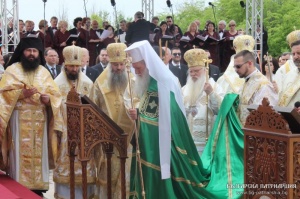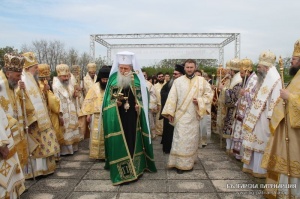 Под открытым небом, среди величественных руин древнего храма, священное сослужение было возглавлено Его Святейшеством Болгарским патриархом Неофитом.