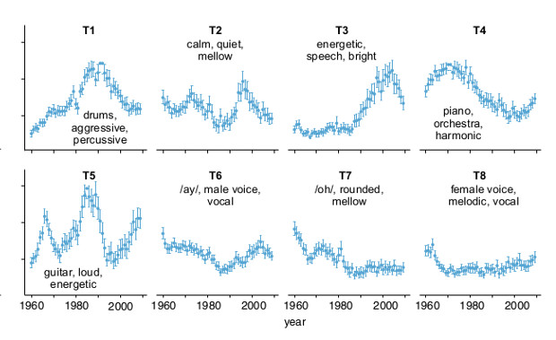 Last.FM проанализировали эволюцию популярной музыки с 1960 по 2010 годы в