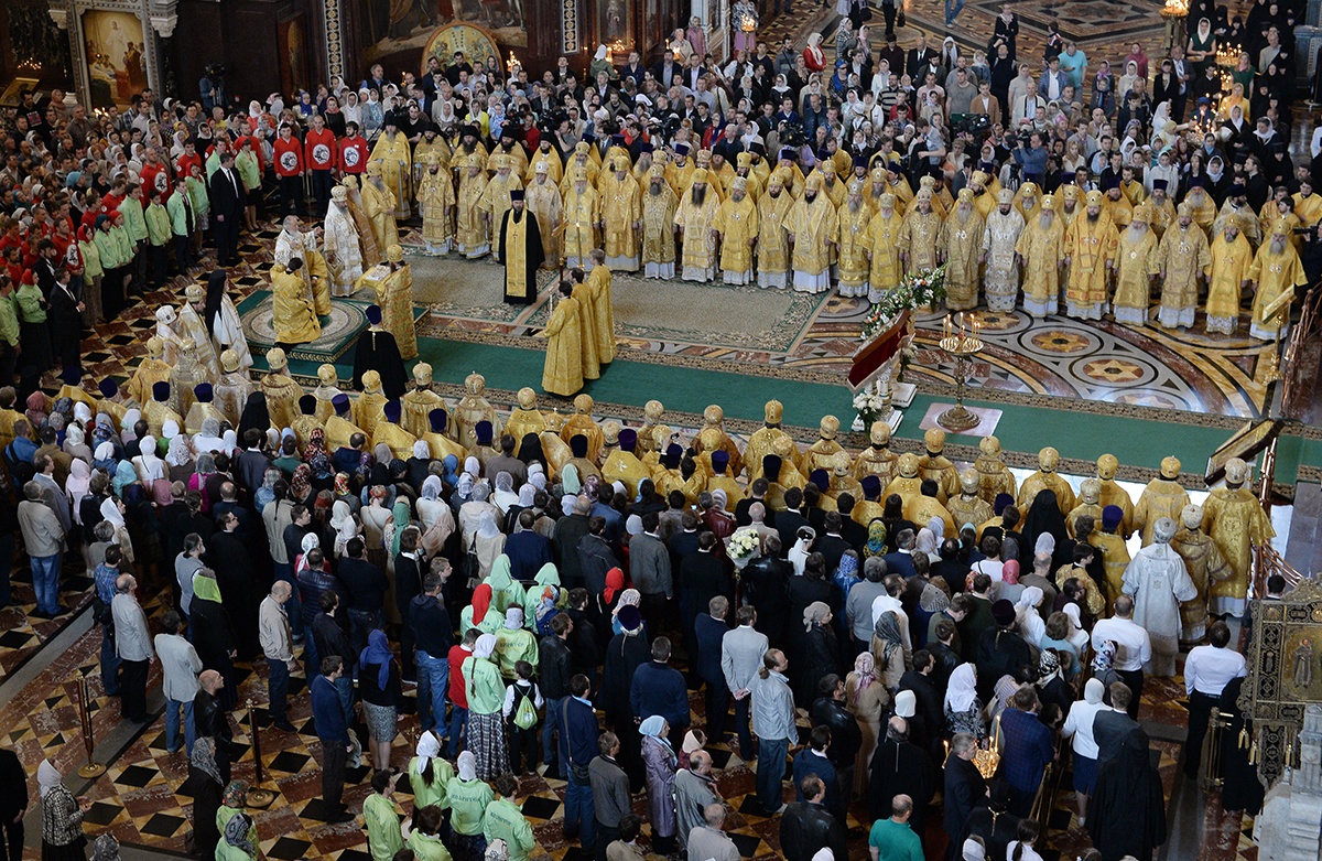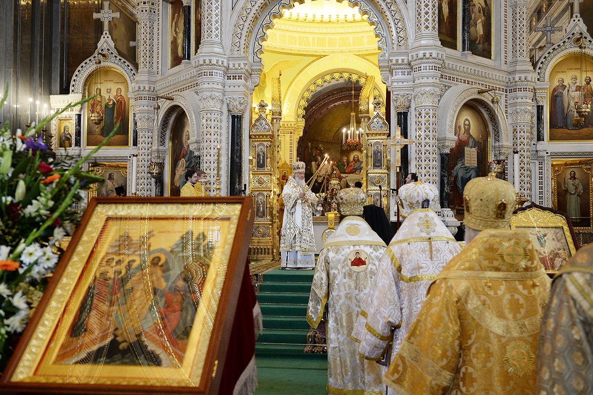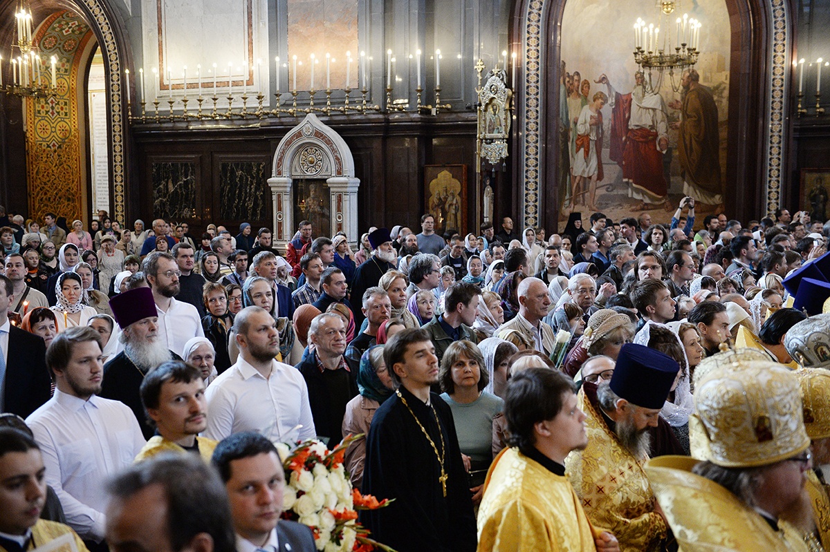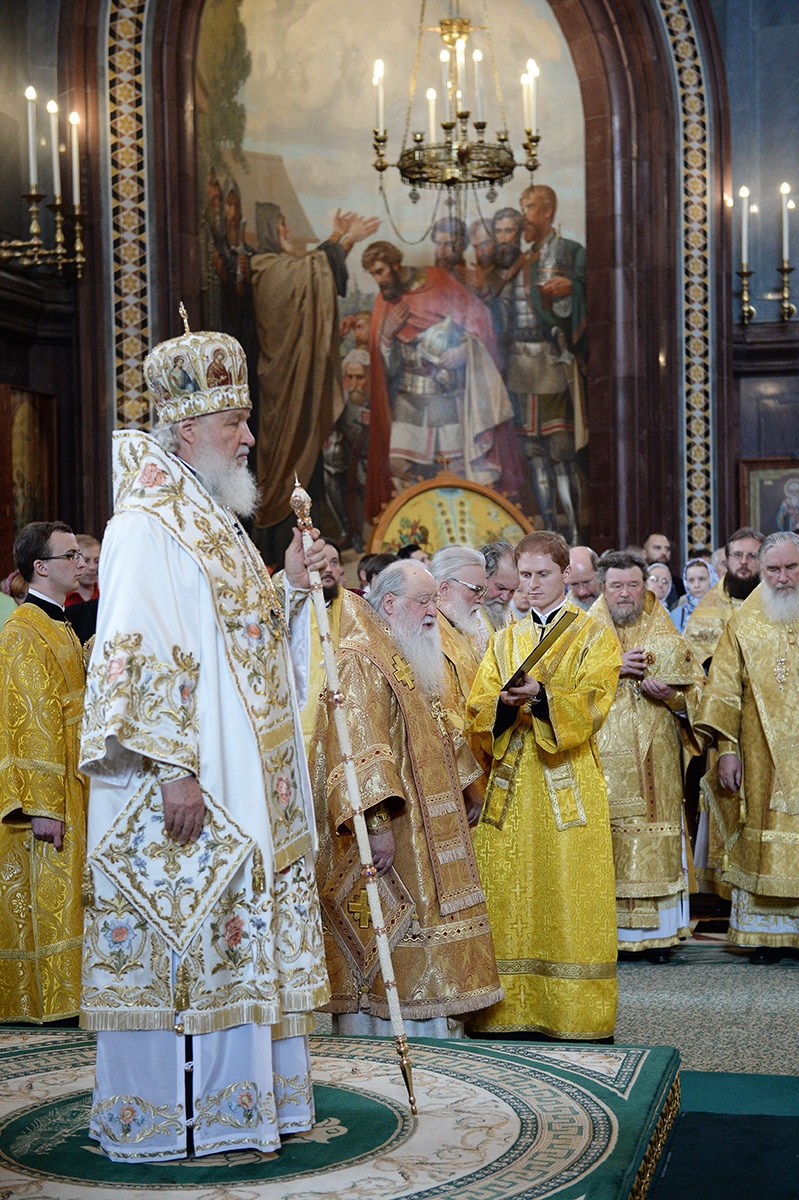 Сегодня во всем мире и в Отечестве нашем идет брань вокруг того, как понимать просвещение, какой свет должно нести людям это просвещение. А потому молитва наша о том, чтобы святые равноапостольные Кирилл и Мефодий, положившие начало нашему просвещению, приклонили милость Божию к народу нашему, к нашей Церкви, с тем, чтобы она оставалась способной убедительно свидетельствовать миру о свете Божием, о святости и о просвещении, целью которого является возвышение человеческой личности.