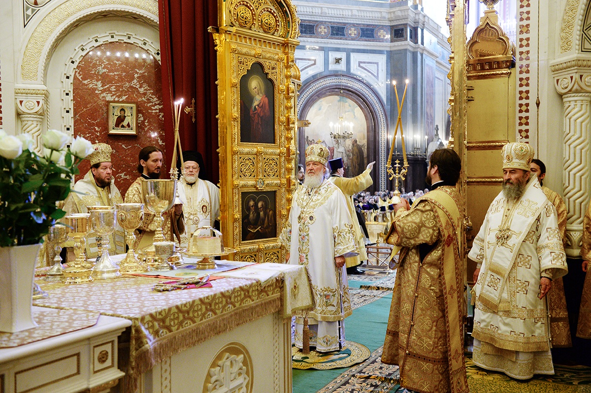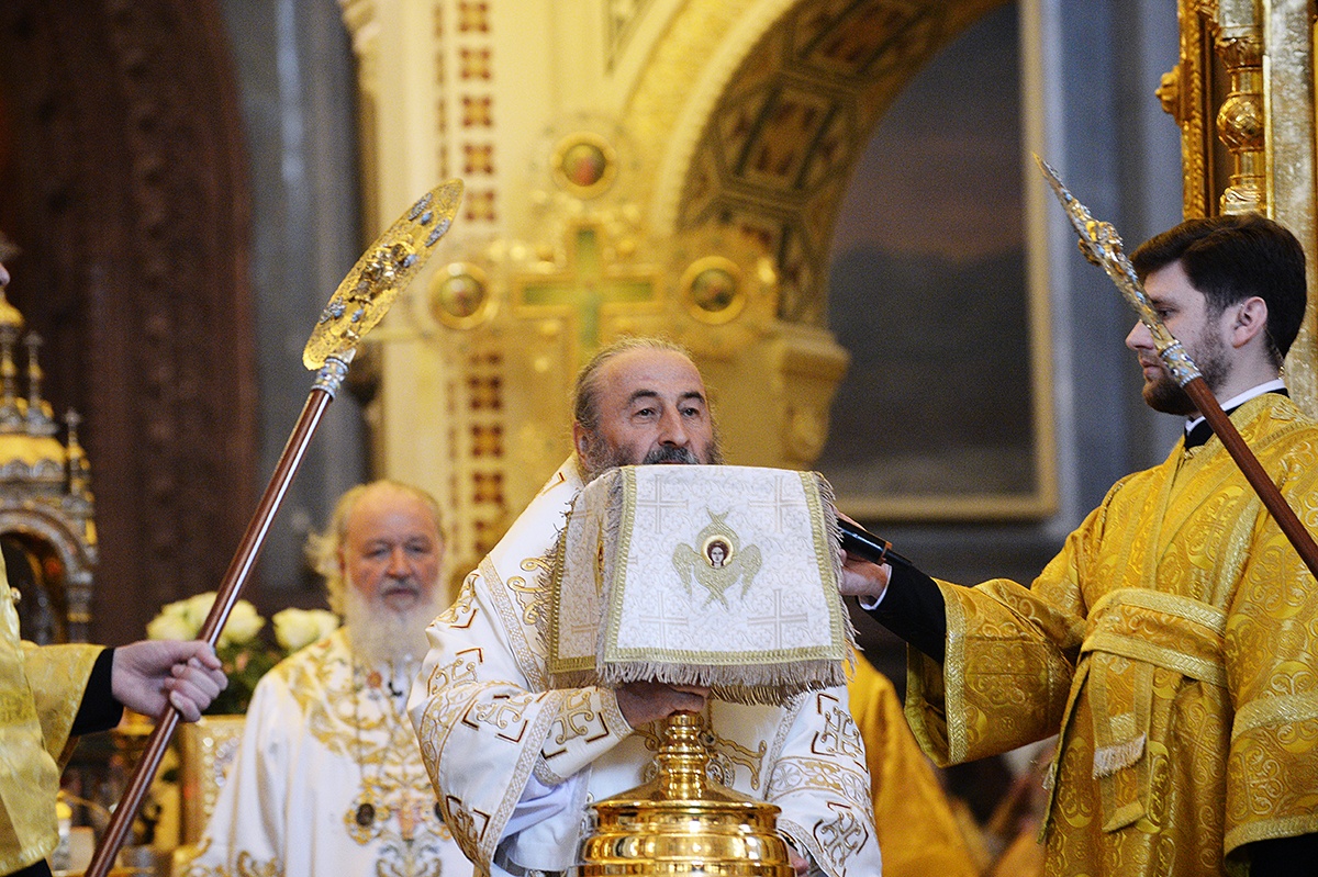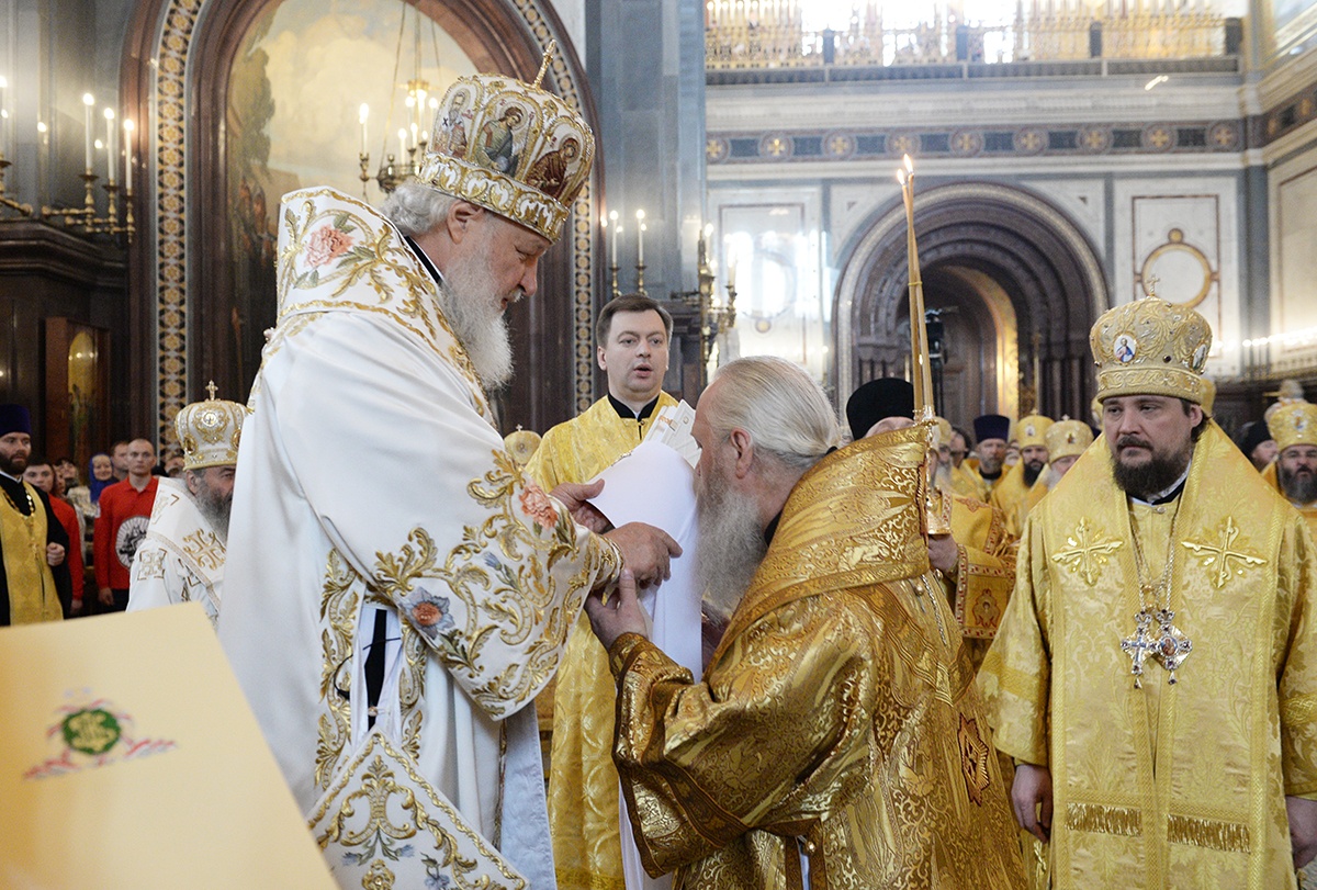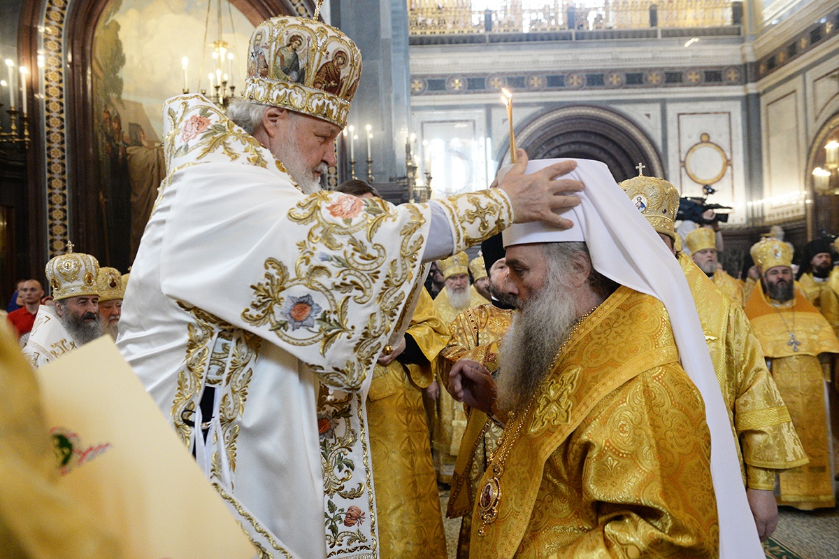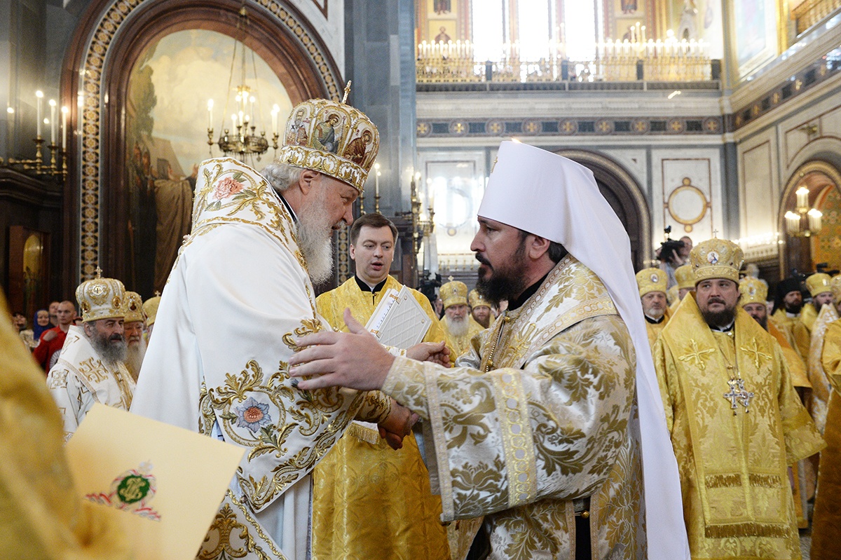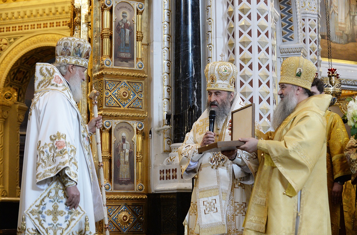 Я хотел бы поблагодарить Вас, Ваше Блаженство, за приветствие от имени Священного Синода и за сказанное Вами лично. На каждой Божественной литургии мы молимся об Украине. Мы не разделяем народ Украины. БОльшая часть народа Украины — это наша паства, это православные верующие люди, которые свидетельствуют о Христе со времен Крещения в днепровских водах. Украинская Православная Церковь — это драгоценный алмаз в короне всех Божиих Церквей, существовавших и существующих, потому что с историей Церкви нашей на берегах Днепра связано рождение православной русской цивилизации. Той самой цивилизации, которая выдержала самые тяжелые испытания, особенно в течение ХХ века, — испытания агрессивным безбожием и страшными, угрожавшими самому существованию нашего народа опасностями, которые пришли к нам из-за рубежа.