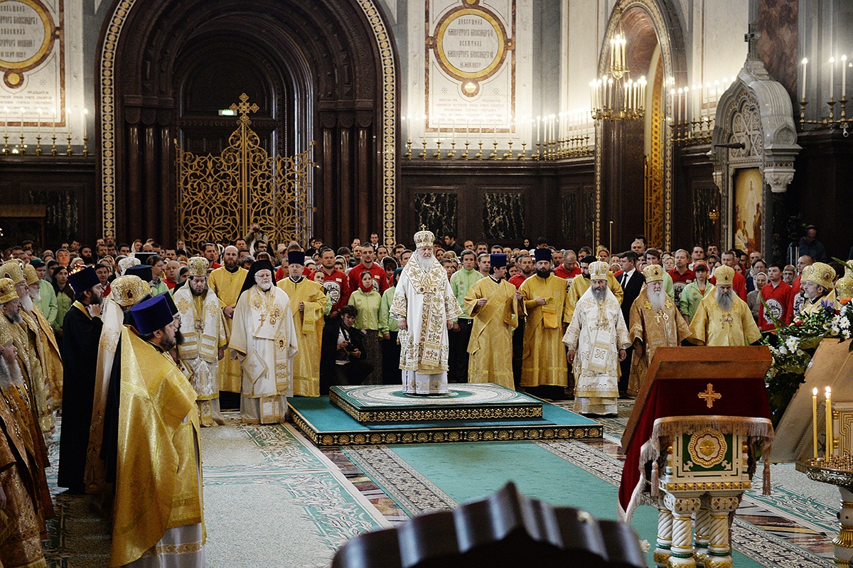 По милости Божией народ наш выстоял, и в этом году мы отпраздновали 70-летие Великой Победы. Мы каждый день благодарим Бога за то, что и воинствующее безбожие отступило, по крайней мере, уже не проявляет себя от имени государственной власти. Каждый человек может верить или не верить — это его личный выбор; но когда безбожие становится государственной идеологией, в результате чего гибнут люди, разрушаются святыни, хулится имя Божие, то это уже более чем идеология. Со всем этим справилась Церковь наша, справился украинский православный народ. Верим, что испытания, которые выпали на долю нашей Церкви в XXI веке, по милости Божией будут преодолены, как преодолевались тяжкие испытания прошлого. Об этом мы молимся каждый день во всех храмах Русской Православной Церкви.