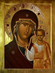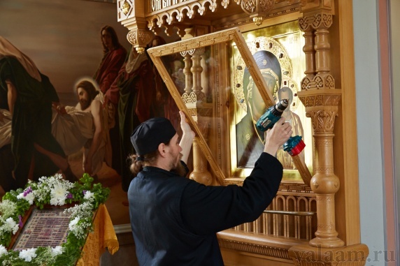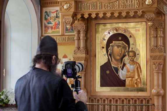 Мироточение Казанской иконы Божией Матери в скиту Всех святых Валаамского монастыряКазанская икона Божьей Матери была написана в одном из сибирских монастырей, специально для валаамского скита, и в мае 2015 года доставлена на Валаам. Она была установлена под стеклом в специальном киоте с надписью «Покрой и Спаси Землю». Сегодня по благословлению епископа Троицкого Панкратия была проведена фотофиксация мироточения иконы, после этого стекло вновь было вмонтировано в киот.