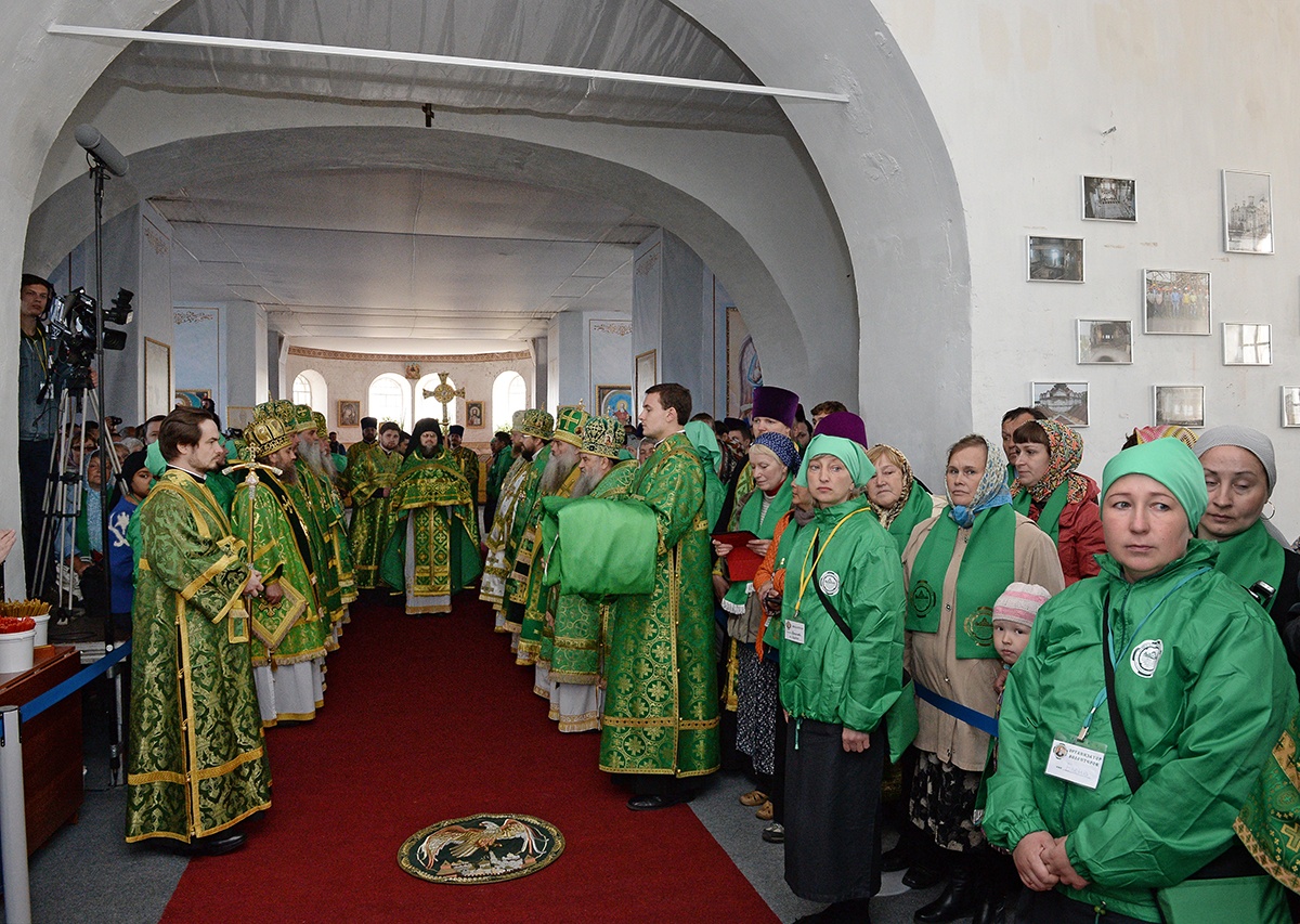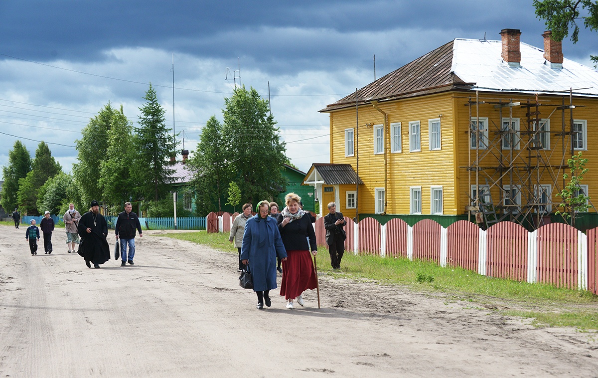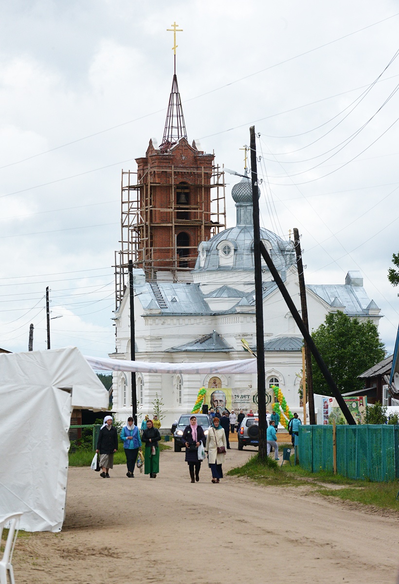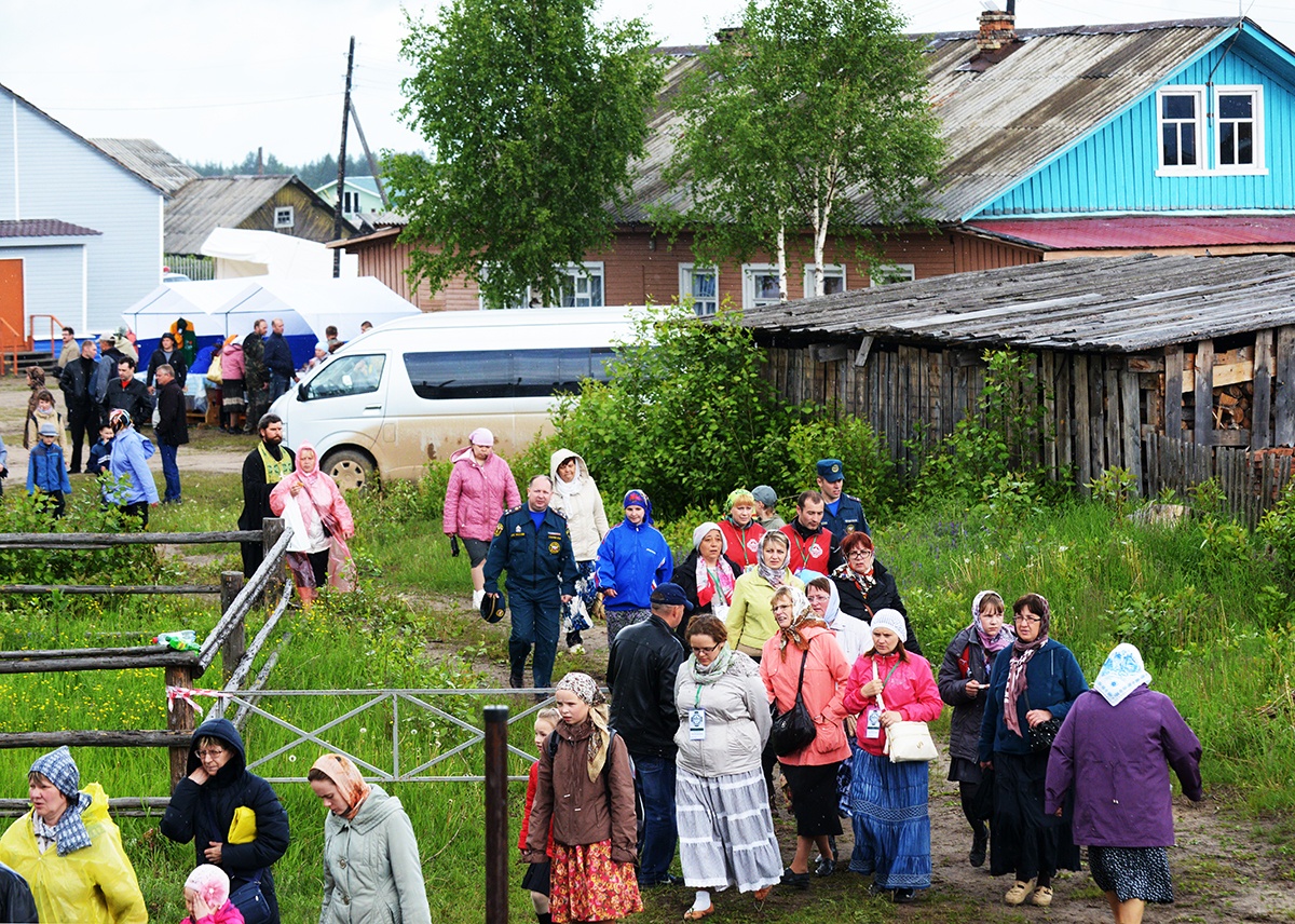 Рано утром накануне, 13 июня, предприняв 100-километровый автобусный марш-бросок от железнодорожной станции Карпогоры, участники торжеств переправились на пароме через реку Пинега и влились в местный сурский крестный ход. Вместе с архангелогородцами, гостями из соседних районов и областей участвовали в торжественном шествии между Успенским и Никольским соборами по улице Иоанна Кронштадтского около 2 тысяч человек.
