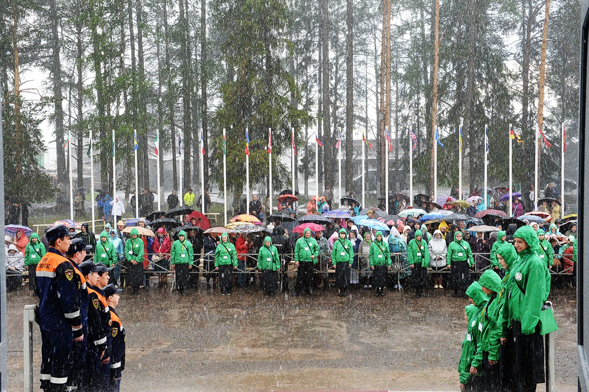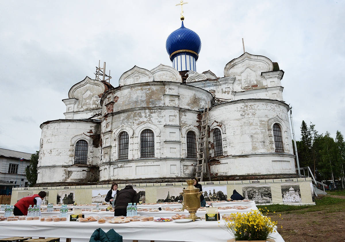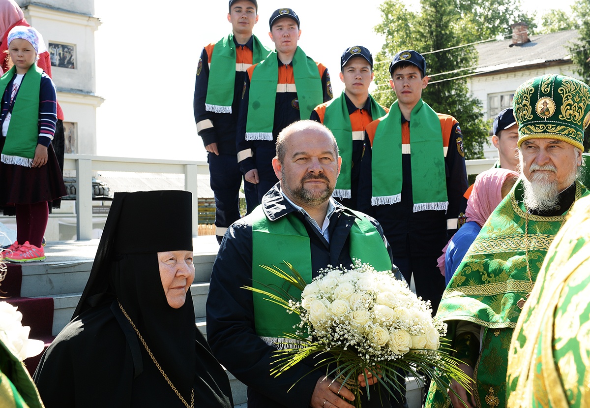Рано утром накануне, 13 июня, предприняв 100-километровый автобусный марш-бросок от железнодорожной станции Карпогоры, участники торжеств переправились на пароме через реку Пинега и влились в местный сурский крестный ход. Вместе с архангелогородцами, гостями из соседних районов и областей участвовали в торжественном шествии между Успенским и Никольским соборами по улице Иоанна Кронштадтского около 2 тысяч человек.