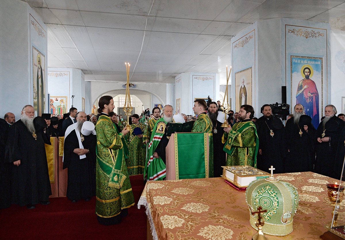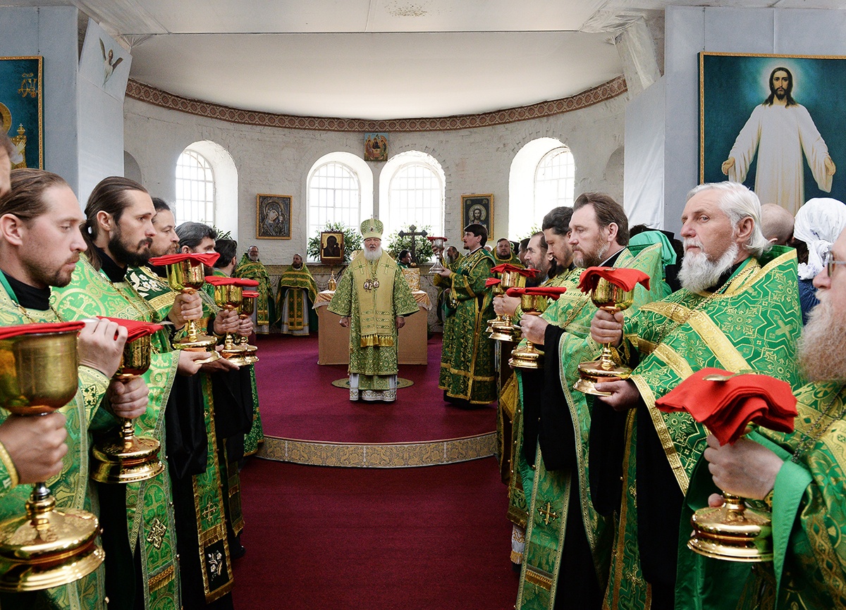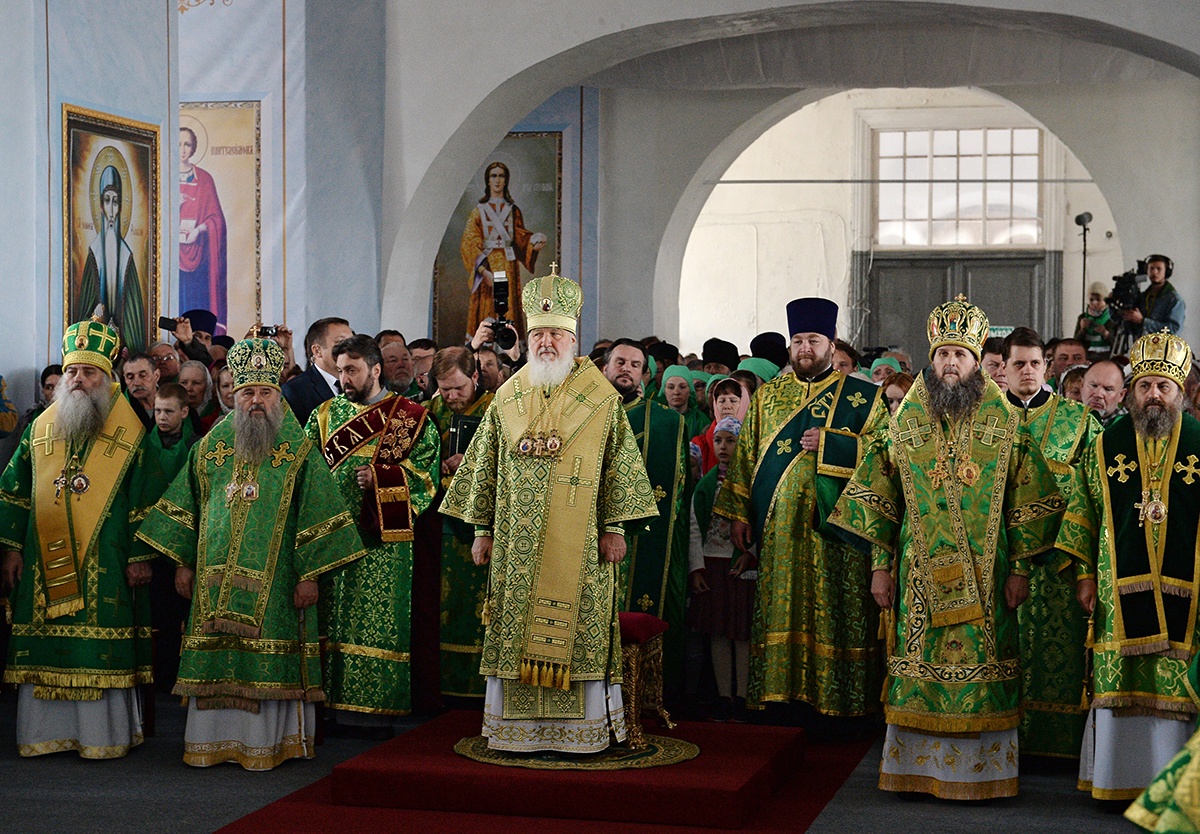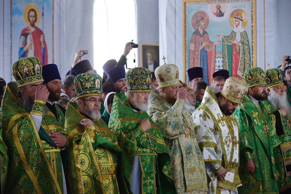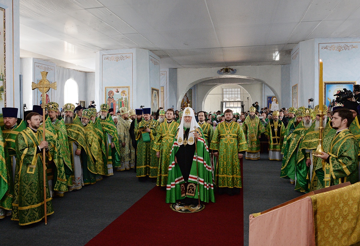 Сегодня, в день памяти св. прав. Иоанна Кронштадтского, совпавший с праздником Всех святых в Земле Российской просиявших, в Никольском соборе состоялась ранняя Литургия, за которой молилось большинство участников международного крестного хода. Затем в Успенском соборе началось праздничное Патриаршее богослужение.
