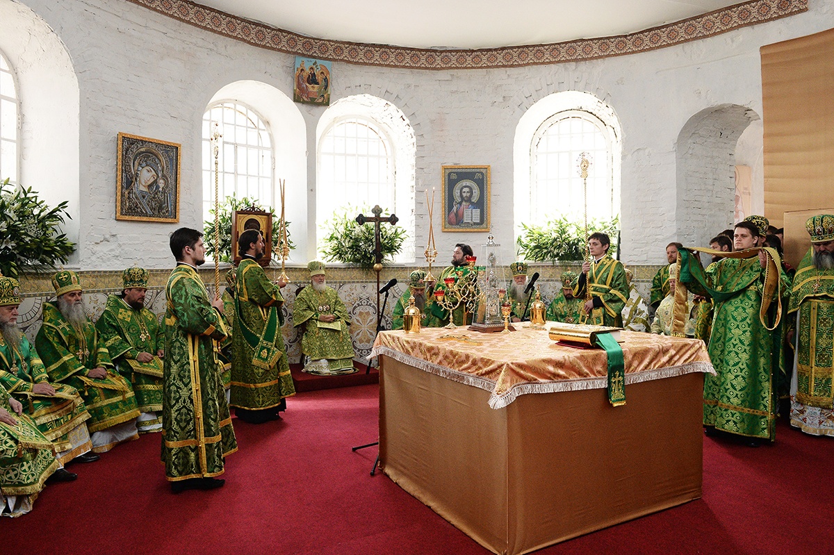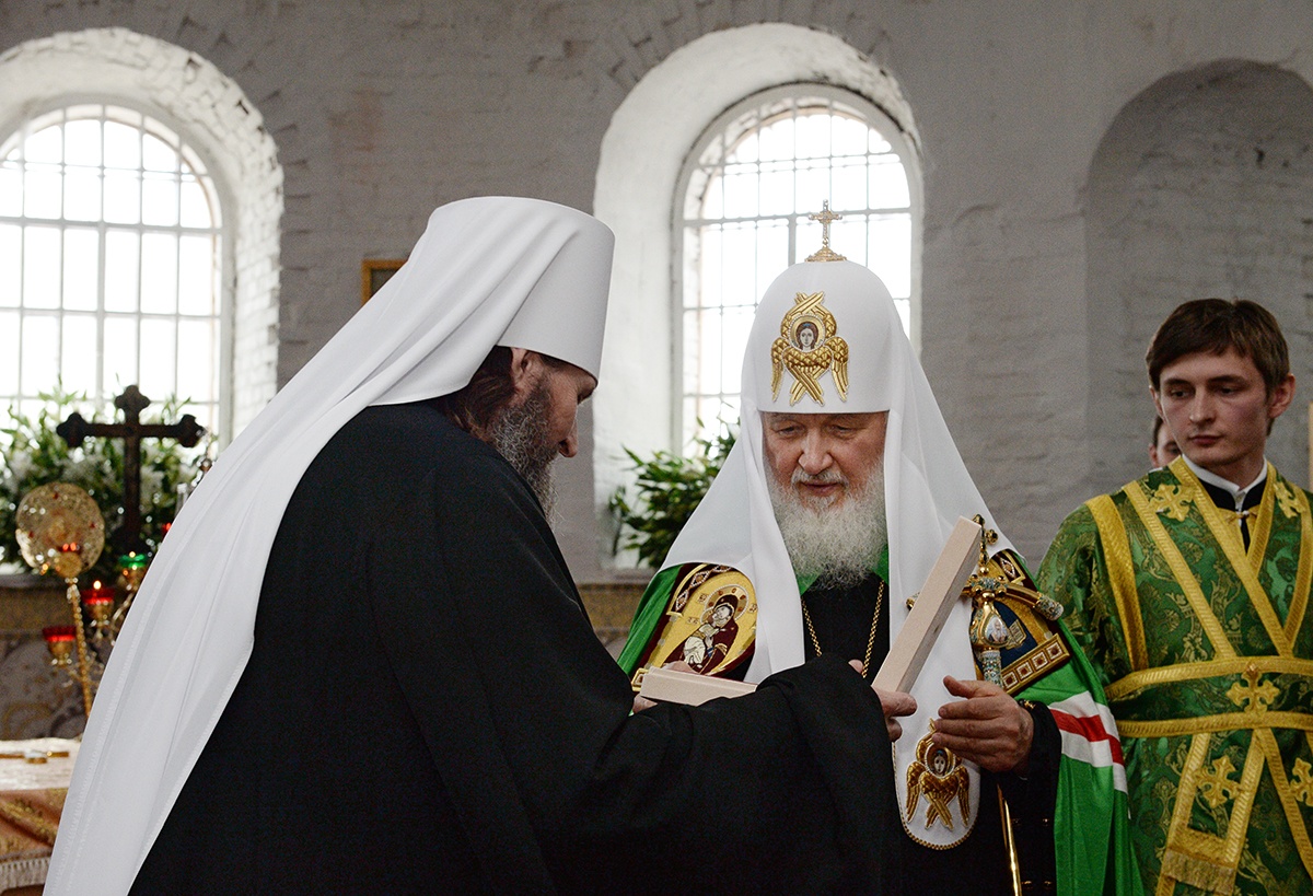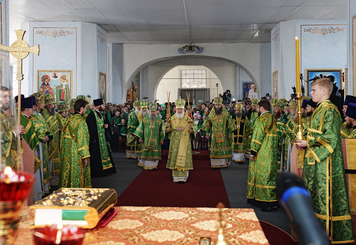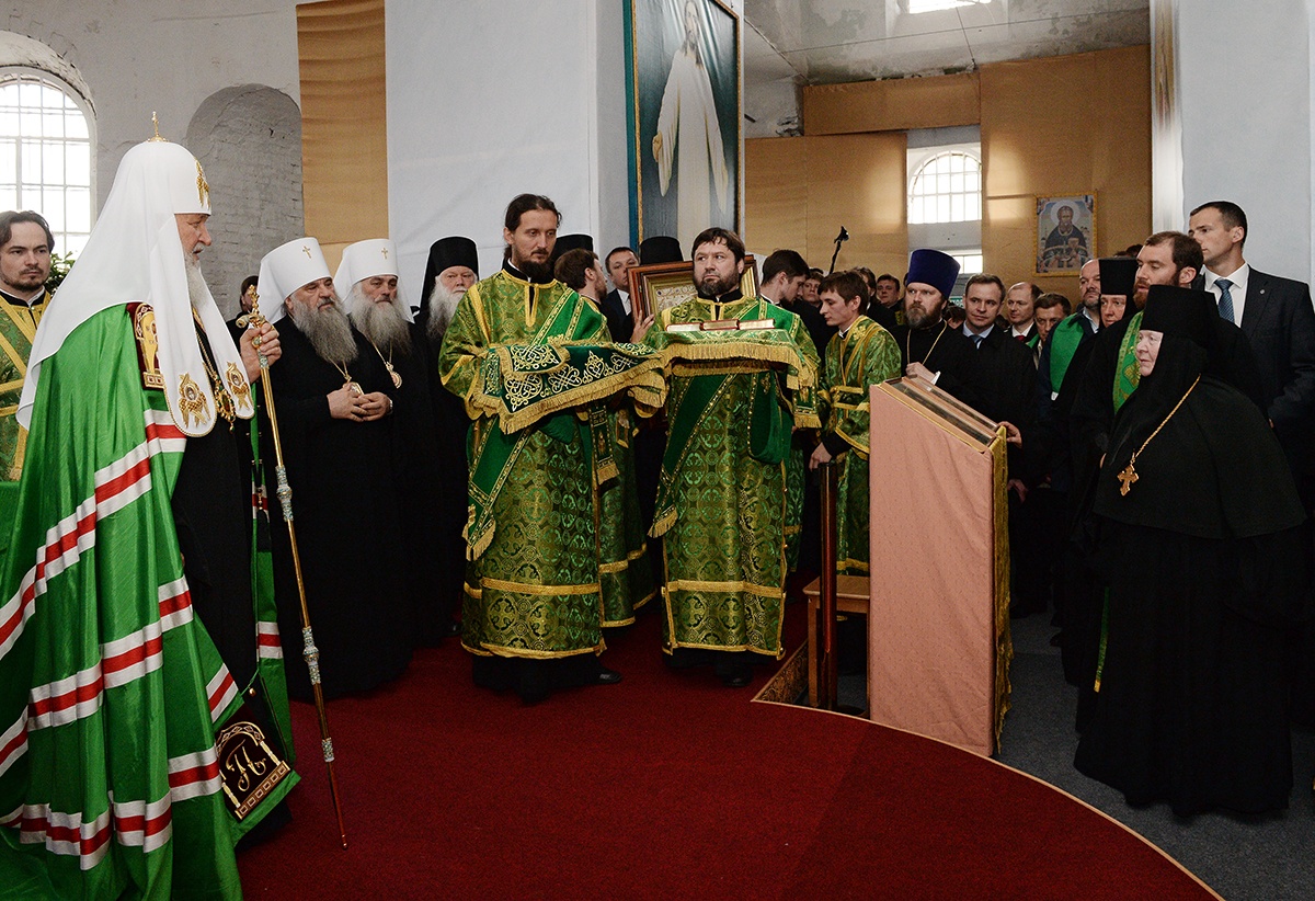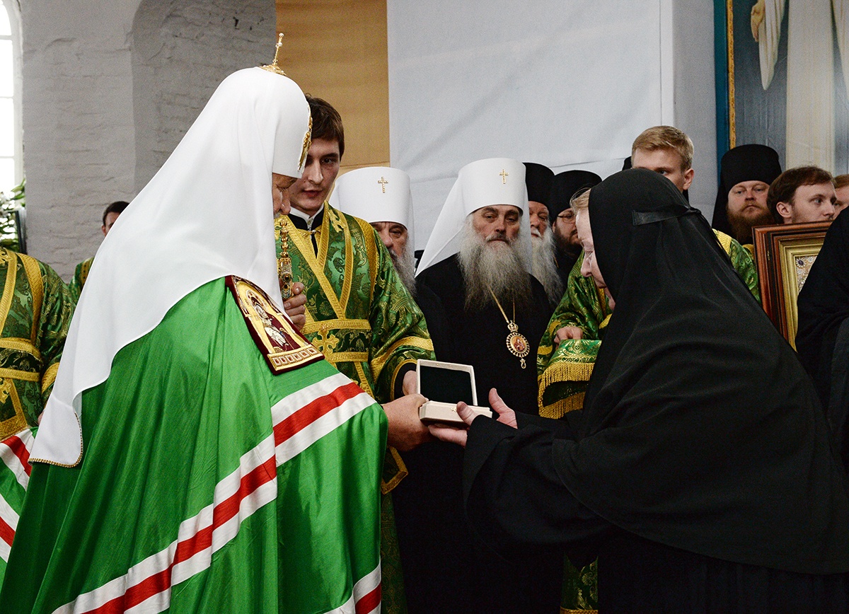 Сегодня, в день памяти св. прав. Иоанна Кронштадтского, совпавший с праздником Всех святых в Земле Российской просиявших, в Никольском соборе состоялась ранняя Литургия, за которой молилось большинство участников международного крестного хода. Затем в Успенском соборе началось праздничное Патриаршее богослужение.