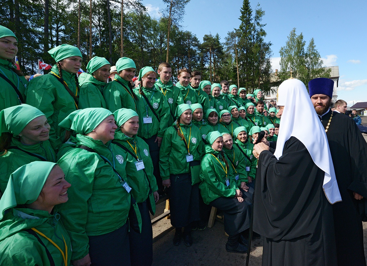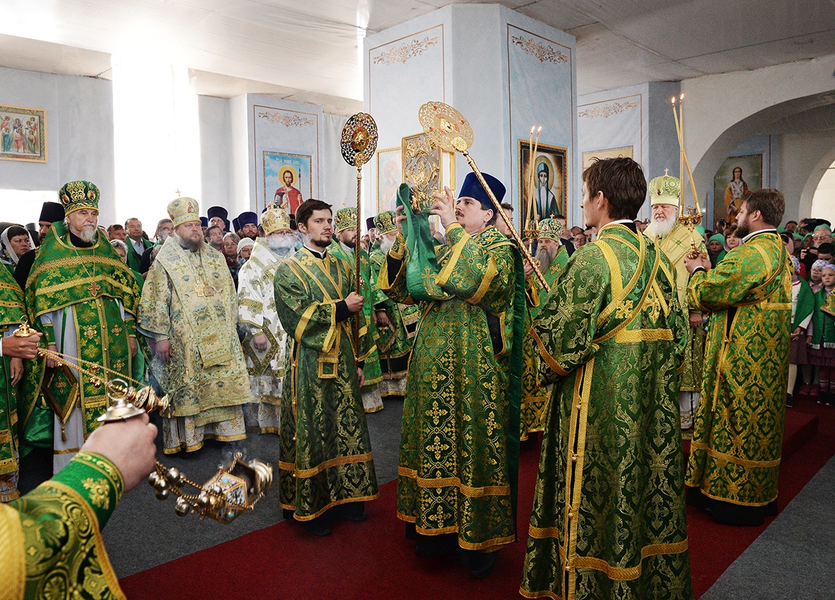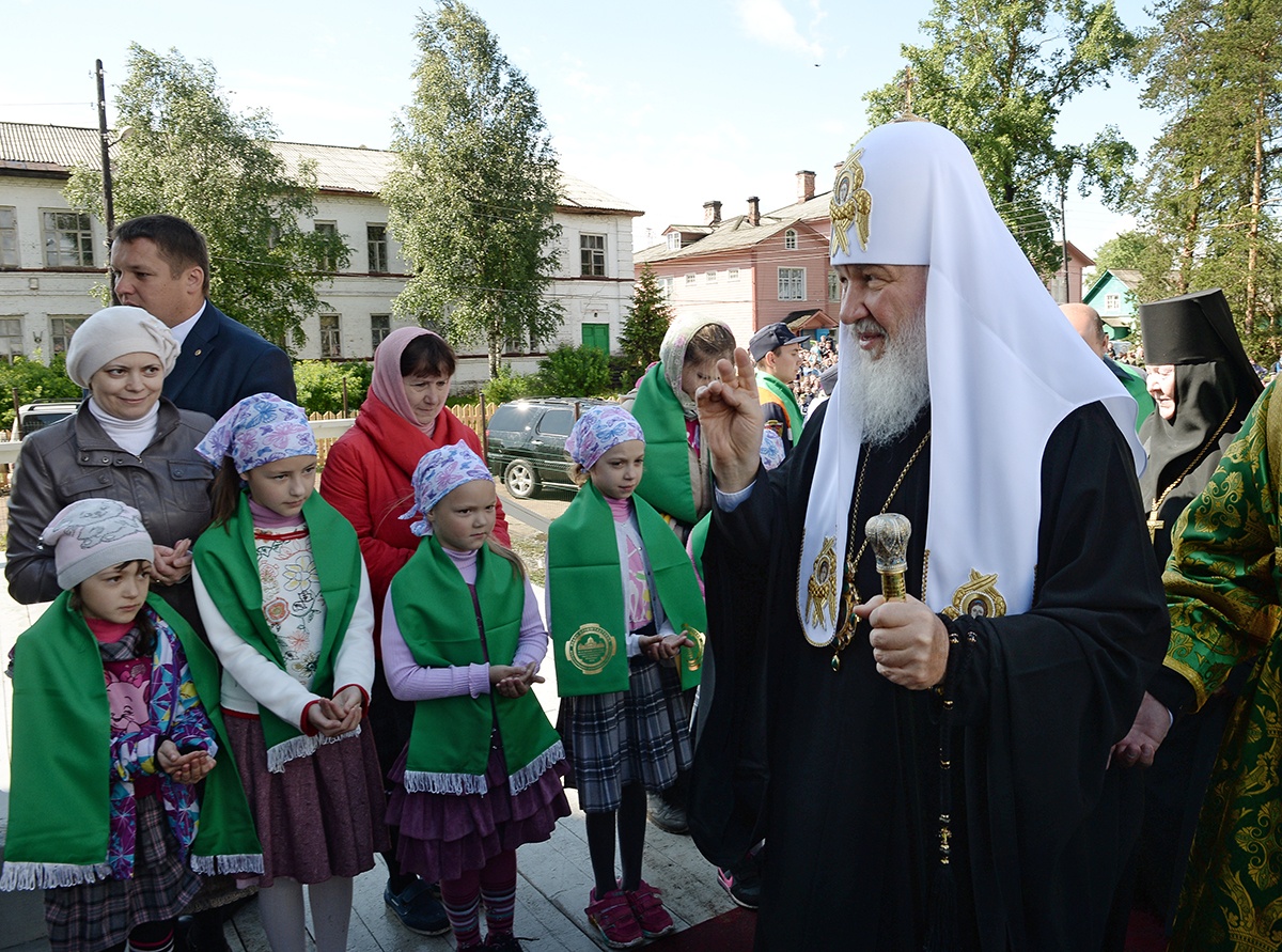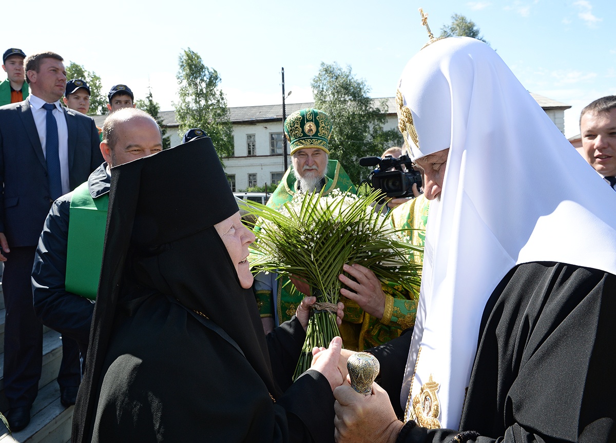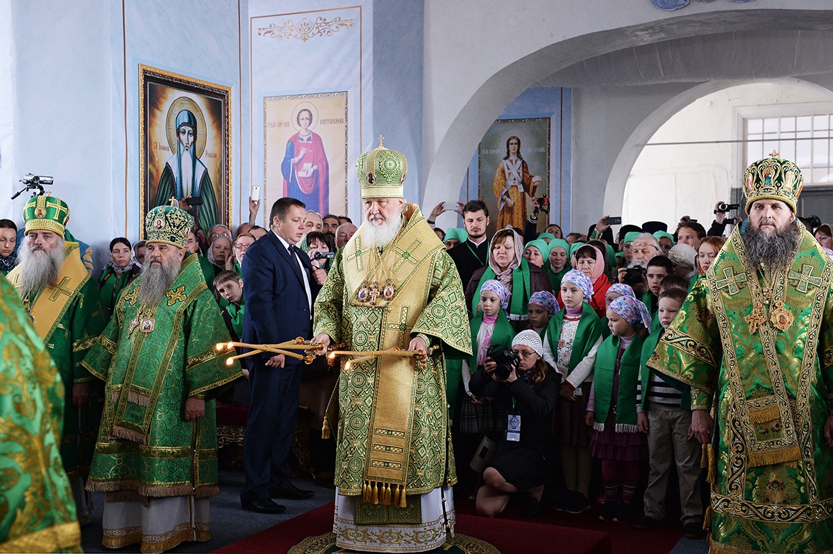 «Хорошо помню 25-летней давности обстоятельства канонизации святого праведного Иоанна Кронштадтского, - произнес, обращаясь по окончании богослужения к пастве с первосвятительским словом, Предстоятель. - Пожалуй, ни одно прославление той эпохи – за исключением, быть может, причисления к лику святых блаженной Ксении Петербургской – не воспринималось в народе с таким воодушевлением и подъемом, как это. Почему? Прежде всего потому, что святой праведный Иоанн служил и окончил свои земные дни, когда в жизнь пришло поколение, дожившее до его канонизации. Но еще и потому, что даже до формальной канонизации люди очень сильно любили и почитали отца Иоанна, и началось это почитание еще при его земной жизни. Совсем недавно я прочитал замечательную книгу, написанную очевидцем путешествия о. Иоанна из Кронштадта в Суру водным путем. Удивительно было внимать словам автора о том, с какой горячей любовью народ на всем протяжении встречал пастыря. Там, где водный путь узок – в каналах вдоль Ладоги, Онеги – народ на протяжении десятков километров бежал за судном о. Иоанна, а его прибытие в Суру сопровождалось поистине всеобщей радостью. И сегодня чудеса случаются у гробницы святого праведного Иоанна – всякий раз, когда мы обращаемся к нему с горячей верой в сердце. Наверное, причина такого особого отношения – и в силе его слова, и в силе его веры, и в тех добрых делах, которые он совершал. И в том мужестве, с которым он боролся за Святую Русь! Он чувствовал сердцем, прозревая своим духовным взором страшные опасности, которые уже тогда угрожали нашему Отечеству: упадок нравов, фактический отход от веры тех, кто должен был бы стоять на ее защите. Его пастырское сердце надрывалось от захлестнувших общество пороков. Мы знаем: его предчувствия в полной мере осуществились. И сегодня наша молитва великому ходатаю за землю Русскую должна быть особенно горячей. Мы просим великого нашего пастыря, чтобы стихли те бури, которые – пусть пока не в таких страшных масштабах – бушуют на нашей земле. Сегодня Церковь, повторяя служение о. Иоанна Кронштадтского и обращаясь к людям, умоляет и просит: храните веру православную, без которой наша погибель! Так говорил и св. Иоанн Кронштадтский, шокируя некоторых современников. Там, где вера – тем подлинная любовь из глубины сердца к своей земле».
