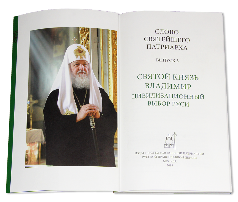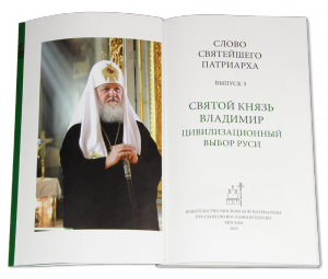 КИРИЛЛ Третий выпуск серии «Слово Святейшего Патриарха» посвящен празднованию тысячелетия преставления святого равноапостольного великого князя Владимира. Как отмечает Святейший Патриарх, празднование юбилея возвращает нас к истокам нашей цивилизации, актуализирует важнейшие смыслы в истории стран — наследниц Древней Руси, побуждая осмыслить богатое наследие, оставленное святым князем Владимиром. Заглядывая в прошлое, нам — его потомкам и духовным преемникам — необходимо извлекать правильные уроки для настоящего и будущего.