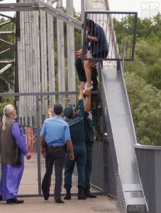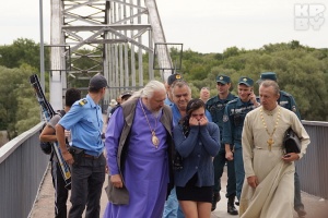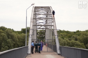 Православный епископ в Гомеле уговорил девушку не прыгать с мостаВ среду утром гомельчане стали свидетелями очередного ЧП на пешеходном мосту через реку Сож возле Дворцово-паркового ансамбля. Этот мост настолько популярный у самоубийц и эктремалов, что подход к его высокой ферме, на которую раньше залазили, чтобы прыгнуть в воду, пришлось заварить решетками. Но и они не помешали очередной обиженной на жизнь девушке взобраться на самую высокую точку фермы - 30-35 метров над рекой. Не известно, чем бы все окончилось, если бы на мост не вышел епископ Гомельский и Жлобинский Стефан - его епархиальное управление находится буквально в двух шагах от моста. Он подошел к девушке и, стоя внизу, начал разговаривать с ней. Правоохранители и спасатели при этом не стояли рядом, поэтому не слышали, о чем шла речь. Но самое главное, что через несколько минут девушка сама спустилась с фермы. Она шла, покачиваясь, под охи и ахи зевак, но благополучно добралась до решеток, откуда ее сняли сотрудники МЧС.