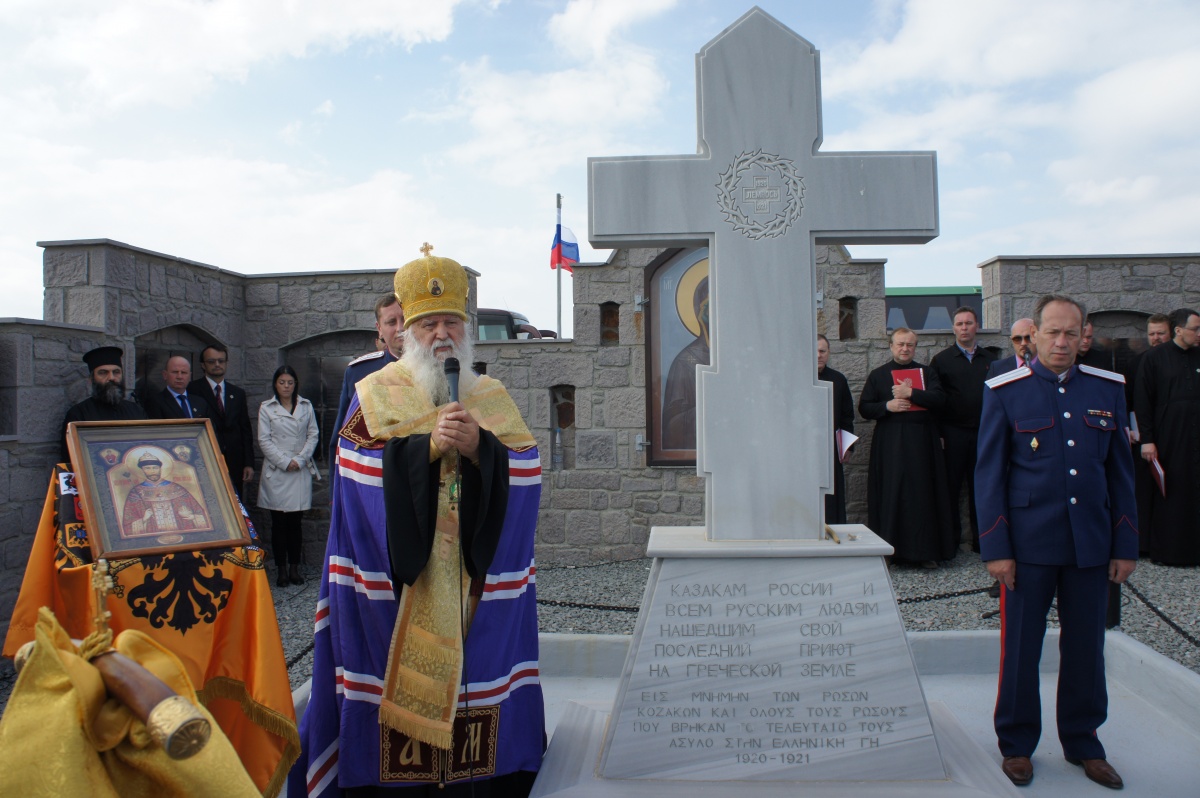 В этот же день на мысе Пунда, на берегу Мудросского залива, состоялась панихида в память о наших погибших соотечественниках, которую служил архиепископ Женевский и Западно-Европейский Михаил (Донсков) в сослужении протоиерея Михаила (Австралия) и игумена Петра (Кострома). Именно на том месте 95 лет назад был устроен лагерь кубанских казаков. Там же появилось кладбище, где покоится прах 380 наших соотечественников — казаков и военных, членов их семей. До начала ХХI века русское кладбище находилось в забвении.