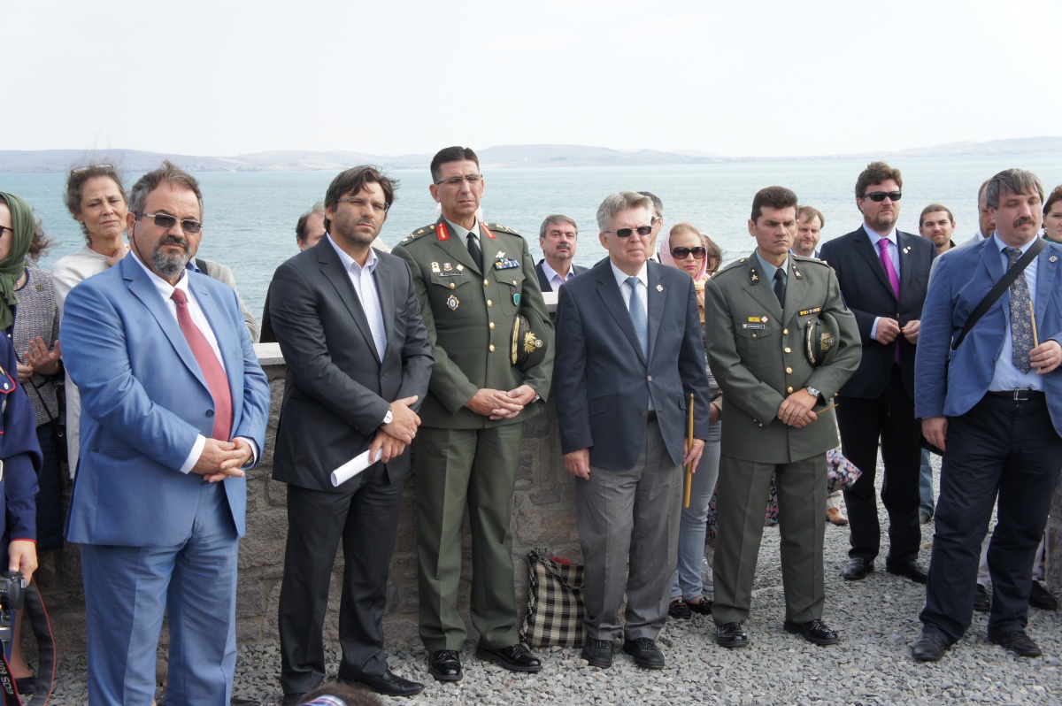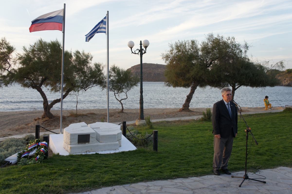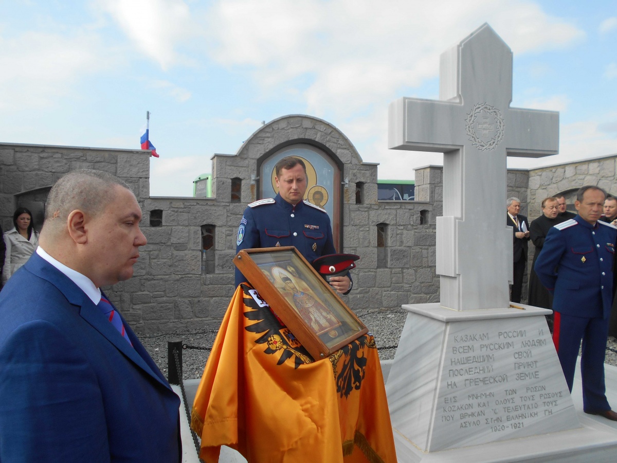 В возложении венков к мемориалу воинов Белой армии участвовали Генеральный консул России в Салониках Алексей Анатольевич Попов; от губернии Северных островов Греции — господин Адамитис; от потомков Белых воинов — Алексей Григорьев; от православных меценатов — Юрий Логинов.