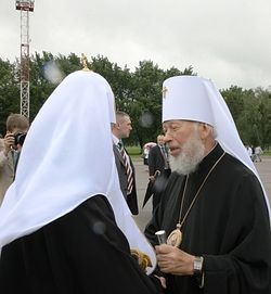 Святейший Патриарх Кирилл прибыл на Украинскую землю27 июля 2009 года Святейший Патриарх Московский и всея Руси Кирилл прибыл на Украину с пастырским, молитвенным и паломническим визитом. Фото: С. Власов / Патриархия.ru В киевском аэропорту Борисполь Предстоятеля Русской Православной Церкви встречал Блаженнейший митрополит Киевский и всея Украины Владимир с собором архипастырей Украинской Православной Церкви, клирики и монашествующие. Среди встречавших также государственные деятели Украины, в том числе заместитель главы Секретариата Президента Украины Ю.П. Богуцкий, глава Совета национальной безопасности и обороны Украины Р.В. Богатырева, руководитель Государственного комитета по делам национальностей и религий Украины Ю.Е. Решетников, глава фракции Партии регионов в Верховной Раде В.Ф. Янукович. В аэропорт также прибыли представители Посольства России в Киеве. В ходе визита Святейшего Патриарха сопровождают исполняющий обязанности управляющего делами Московской Патриархии архиепископ Саранский и Мордовский Варсонофий, председатель Отдела внешних церковных связей Московского Патриархата архиепископ Волоколамский Иларион, руководитель Административного секретариата Московской Патриархии епископ Солнечногорский Сергий, председатель Синодального отдела по взаимоотношениям Церкви и общества протоиерей Всеволод Чаплин, заместитель председателя ОВЦС протоиерей Николай Балашов, председатель Синодального информационного отдела В.Р. Легойда и другие. Святейший Патриарх Московский и всея Руси Кирилл впервые после избрания и интронизации посещает Киев — «мать городов русских» — в связи с празднованием памяти святого равноапостольного князя Владимира, Крестителя Руси (15/28 июля), отмечать которую с особой торжественностью постановил Архиерейский Собор Русской Православной Церкви 2008 года, посвященный теме единства Церкви. Другая важная дата, к которой приурочено Первосвятительское посещение Украинской Православной Церкви, — 450-летие принесения на Русь Почаевской иконы Божией Матери — святыни, особенно почитаемой на Украине, особенно в ее западной части, где и расположена Почаевская лавра — вековая твердыня Православия. Его Святейшество посетит шесть областей и тринадцать населенных пунктов в разных частях страны, возглавит богослужения во всех трех Лаврах Украинской Православной Церкви.