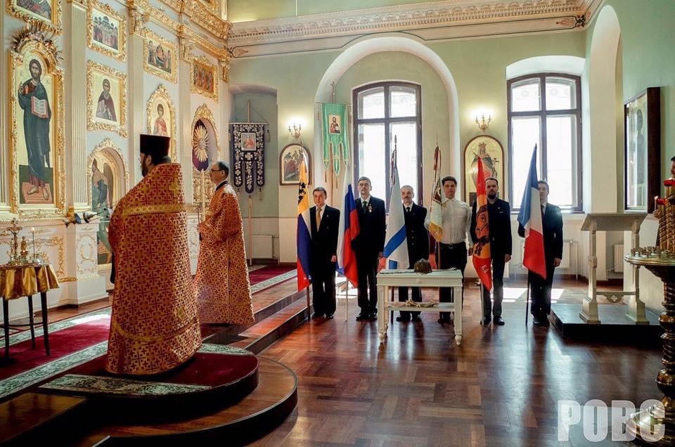 Во время богослужения в храме была выстроена сводная знамённая группа с флагами: Русским Национальным образца 1914 года, Русским Национальным, Андреевским Военно-Морским, штандартом РИС-О, боевым стягом Ополчения Новороссии с ликом Христа Спасителя и надписью «За Веру, Царя и Святую Триединую Русь», а также французским национальным. Сводной знамённой группой командовал Председатель РОВСа, И.Б. Иванов. В храме были выставлены подлинные реликвии Великой войны 1914-1918 гг. – русские и французские боевые награды и шлем воина Русского экспедиционного корпуса.