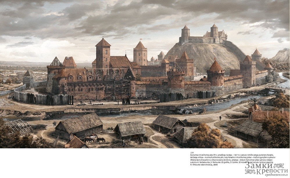 Наваградский замокВильнюс. Так называемая «Міндоўгава Катэдра». Верхний и нижний замок в ХІІІ в.Вильнюс. XIV столетие. Собор Ягайлы.Вильнюс времен Ягайлы. Начало 15-го века.Вильнюс времен Жигимонта Августа и Барбары Радивилл. 16 век.Вильнюсская готика 16-го века. Времена князя АлександраТракайский замок в 14-ом столетииТракай в 15-ом веке.Великий князь Витовт сделал из него родовое гнездо и могучий фортУкрепление тракайского замка. 15 векМедининкай. 1402.Князь Свидригайла с помощью крестоносцев пытается отобрать у Витовта власть над ВКЛ. Свидригайла не смог взять Вильнюс и решил атаковать близкий Медининкай.Строительство замка в Каунасе. 14 век.