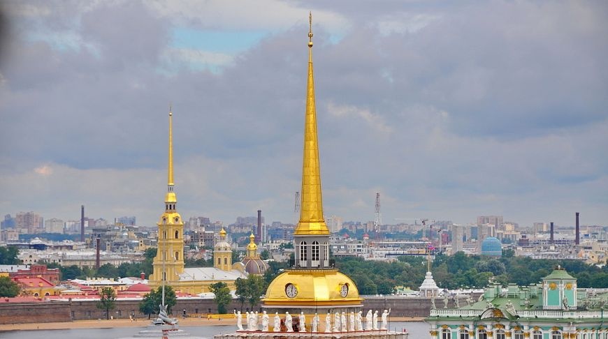Высота шпиля Адмиралтейства — 72 метра. Кораблик-флюгер на его вершине весит 65 кг и покрыт 2 килограммами золота.