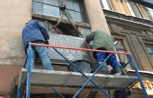 завершился монтаж мемориальной доски Александру Колчаку на доме, где он