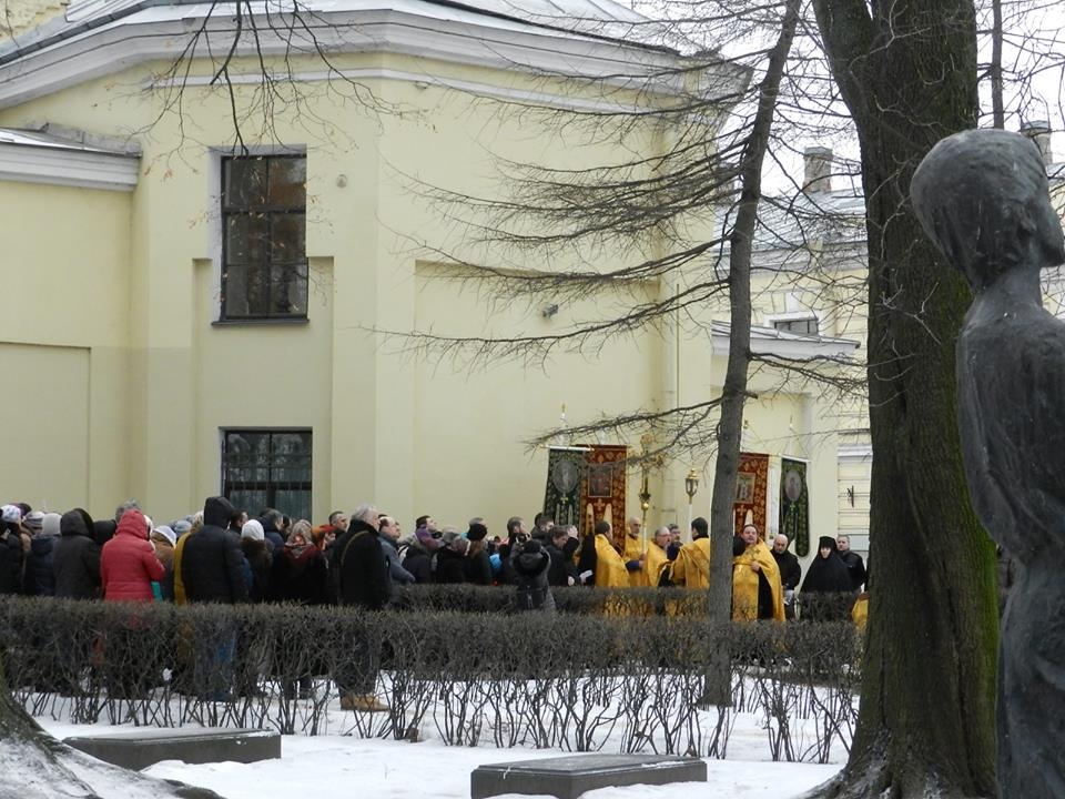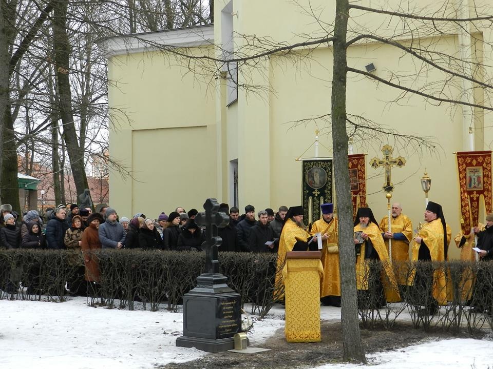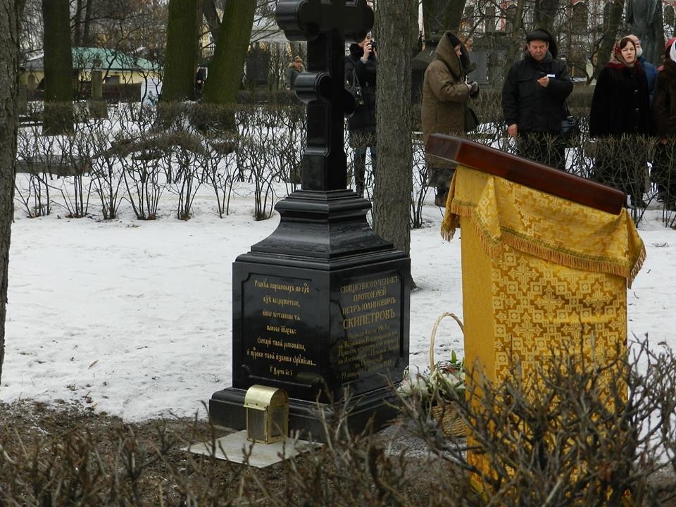 Панихида на могиле священномученика Петра Скипетрова 1 февраля 2017 годаПрихожане Александро-Невской Лавры и члены Александро-Невского братства отслужили панихиду на его могиле. 1 февраля (19 января ст.ст.) Русская Православная Церковь чтит память священномученика Петра Скипетрова. Протоиерей Петр стал первым священником в Петрограде, погибшим от рук богоборческой власти. В 1918 году на пороге епархиального управления он вступился за женщин, оскорбляемых красноармейцами, и был убит выстрелом в голову.