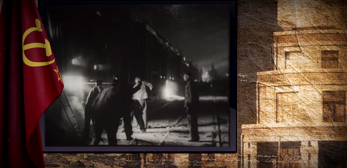 Финал фильма – информация о присвоении Новосибирску звания «Город Трудовой Доблести и Славы».