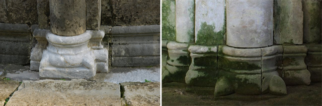 Эти особенности позволили предположить, что мастера, построившие храмовый комплекс в Боголюбове, пришли не из одного города, а из нескольких городов двух исторических областей Италии – Ломбардии и Эмилии-Романья. Сопоставление с другими памятниками белокаменного зодчества Владимиро-Суздальской Руси приводит к заключению, что Боголюбово строили две группы резчиков: первая группа - старых мастеров князя Юрия Долгорукого, построивших также Спасо-Преображенский собор в Переславле-Залесском и Золотые ворота во Владимире, и вторая - мастера из Северной Италии, которые принесли во владимиро-суздальскую архитектуру новые художественные приемы. Раскопки 2018 года помогли представить более точно очертания древнего храма. Археологи открыли ранее не изучавшиеся участки на северо-восточном углу собора и в северной части центральной абсиды тройного алтаря и обнаружили новые детали, указывающие на сложную архитектуру комплекса. Ученые обнаружили резной цоколь и мощную угловую колонну со скругленной «подушкой» базы, украшенной романскими «когтями» в переходе от северного фасада к боковому полукружию алтаря. В результате возникает целая «мелодия» белокаменных частей, объединенных общим стилем. В центральной части алтаря храма была открыта другая «мелодия», ранее известная только по фотографиям Н.Н. Воронина: резной цоколь, который перебивают основания тонких колонок.
