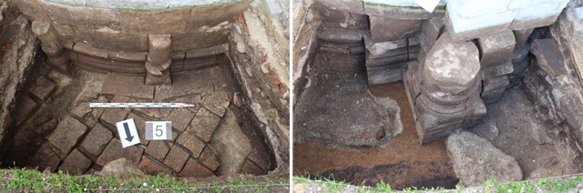 Также археологи расчистили пространство перед стеной вровень с основаниями колонок и обнаружили мощение из блоков белого камня - часть площади, окружавшей собор. Возможно, оно сохранилось на всей площади, окружавшей собор, но, как отмечают ученые, без дальнейших раскопок выяснить это невозможно. Сейчас, по словам исследователей, не представляется возможным определить, какими были декоративные особенности древнего храма. Ученые не исключают, что обширные площадные раскопки позволят обнаружить не известные ранее конструкции вблизи храма, новые фрагменты его резного белокаменного декора и другие элементы, по которым можно будет говорить об особенностях архитектуры древнего Боголюбовского дворцово-храмового комплекса. «По окончании работ шурфы были засыпаны, архитектура старого храма вновь скрылась под землей. Наверное, следует поднять вопрос о полном открытии и музеефикации сохранившихся частей великолепного белокаменного сооружения и внутри и снаружи. Это позволит всем видеть первоначальные архитектурные формы, а также улучшит состояние стен, сейчас полностью или наполовину скрытых грунтом и потому отсыревающих. Но это уже работы бо́льшого масштаба, требующие административной и финансовой поддержки», - отметил Владимир Седов.