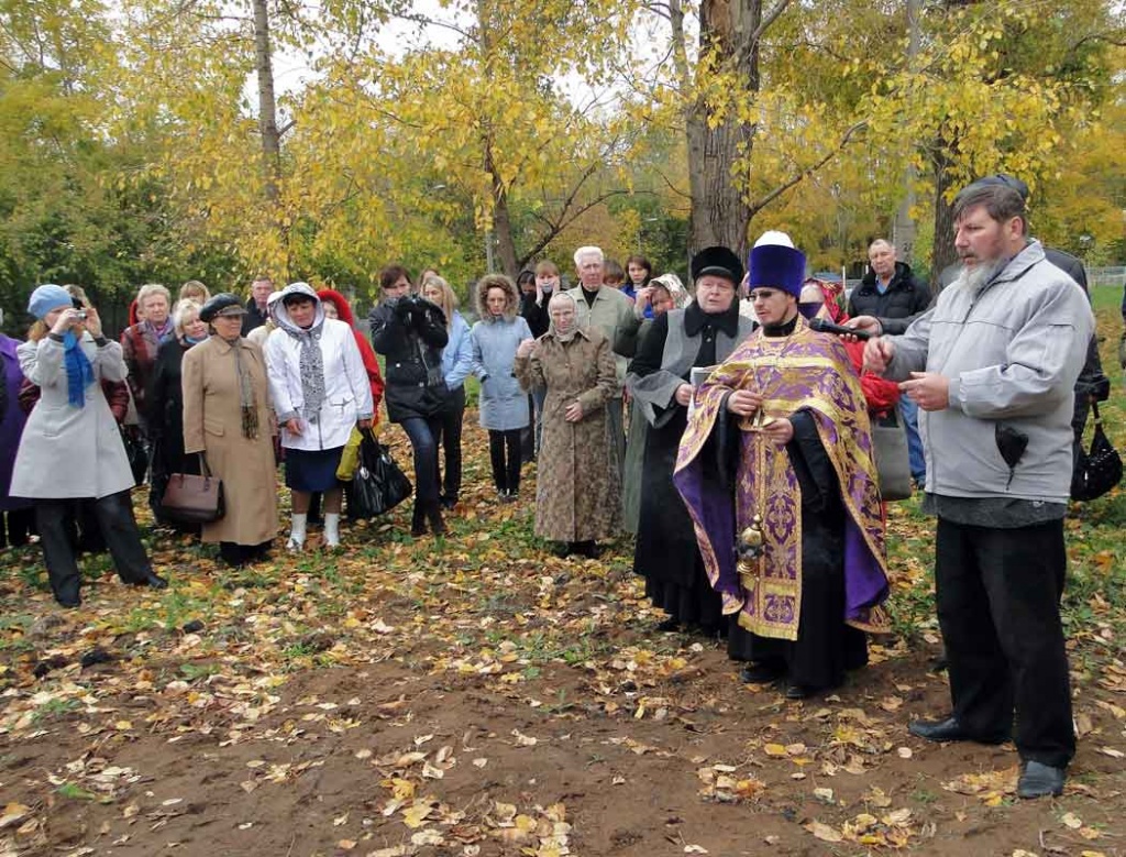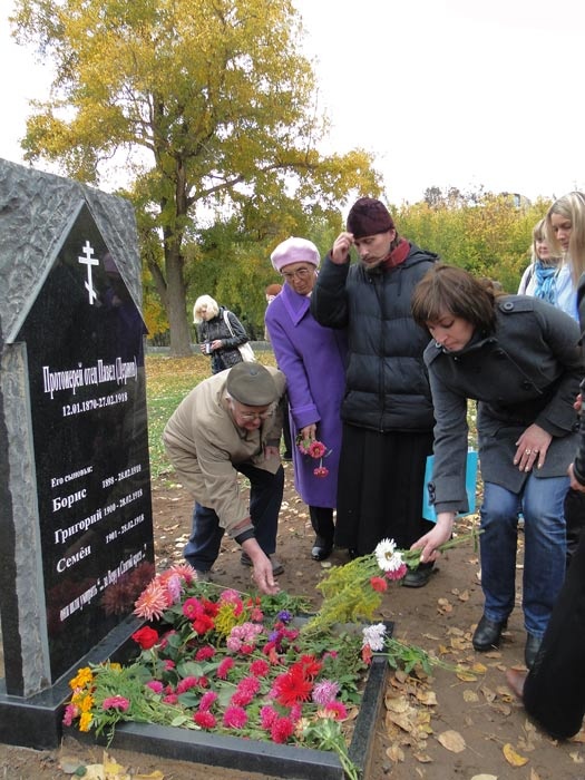 ![]() Возложение цветов на могилу Дерновых. Фото Л. Пахомовой