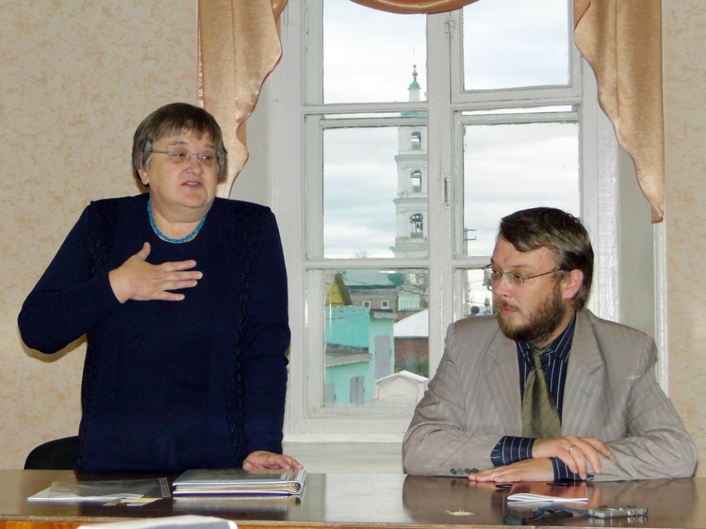 А.С. Филиппова (выступает) и А.В. Маркелов на заседании Елабужского краеведческого центра. Фото Л. Пахомовой «Отец Павел Дернов служил в вашем городе всю жизнь, – рассказал А.В. Маркелов. – Казалось бы, внешне это был достаточно простой священник. В отличие от своего старшего брата Александра Дернова, который являлся настоятелем Петропавловского собора в Санкт-Петербурге, протопресвитером придворного духовенства, членом Священного Синода. Но именно отцу Павлу и его сыновьям суждено было совершить этот духовный подвиг, который и для нас может служить примером того, как нужно жить и умирать».
