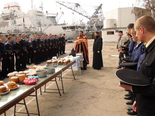 Приходит немало офицеров, приходят матросы. Я уверен, что, если бы этот храм был действующим, большинством прихожан были бы военные. Потому что рядом стоят корабли Черноморского флота, и, когда проводишь беседы, спрашиваешь, кто хочет прийти на службу, исповедоваться, причаститься, - с каждого корабля находится несколько человек. И тогда решается вопрос с командованием, их отпускают на время службы, это бывает достаточно часто. Но пока мне не хватает помощников среди офицеров; одному тяжело. Если бы на каждом корабле был офицер, который занимался бы взаимодействием с Церковью, - не потому, что его назначат, а потому, что он сам этого захочет... В нашем храме сейчас есть алтарник - он лейтенант, служит на корабле и помогает в алтаре. Такие люди очень помогают и готовят матросов.