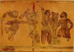 Сибирские ученые повесили на стену ковер времен ХристаАрхеологи из новосибирского Академгородка выставили 6 апреля на всеобщее обозрение вышитый две тысячи лет назад ковер. Он был найден в 2009 году в кургане кочевой империи хунну в горах Ноин-Ула на территории Монголии (120 км от Улан-Батора). Полотно с вышитыми фигурами мужчин лежало на дне разграбленной еще в древности могильной ямы. Восстановлением панно больше года занимались реставраторы из музеев московского Кремля. «Археологам удалось извлечь эти шедевры, которые представляли собой комки грязи, с 10–12-метровой глубины. Таких вещей нет ни в Лувре, ни в Эрмитаже», — говорит заместитель директора Института археологии и этнографии СО РАН академик Вячеслав Молодин. Руководитель новосибирской археологической экспедиции к курганам Ноин-Ула, доктор исторических наук Наталья Полосьмак сравнивает найденные произведения искусства с «книгой, в которой нет текста, но есть картинки». «В это время (I в. до н. э. – I в. н.э.) религия зороастризм охватила почти все иранские народы. Жрец, который стоит возле алтаря, держит в руках гриб. Давно шел спор, из чего делали зороастрийский священный напиток Хаом — или ведийскую Сому», — рассказывает о значении вышивки профессор Полосьмак. Полотно из монгольского кургана позволило доказать, что зороастрийцы использовали для этого галлюциногенные грибы. Ковер выставлялся в Доме ученых СО РАН всего один день, после чего находка будет отправлена в Монголию. Как сказал академик Молодин, в 2011 году новосибирские археологи снова отправятся на раскопки в горы Ноин-Ула.