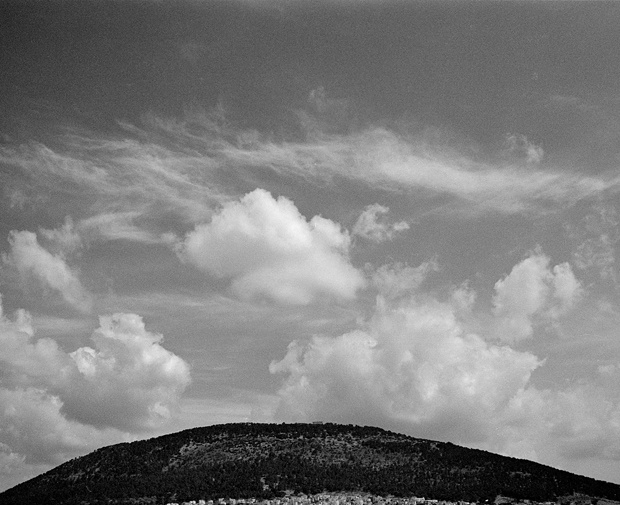 Образ эстета придумал для него великий стилист группы «Кино» и питерский гуру всех артистических модников девяностых Тимур Петрович Новиков. В сквоте на Пушкинской, 10, он создал Новую академию художеств, где богема славила академизм и дендизм. Здесь же организовывались и первые русские рейвы. В затянутых голубым шелком комнатах стояли гипсовые бюсты, играла техно-музыка и проходили выставки новых художников. В 1997 году сюда на выставку Розанова пришли его первые зрители — Брайан Ино и Брайан Ферри. «Помню, Брайан Ферри был в белом плаще. Я еще сказал «здрасте» и убежал, а когда пришел в себя, он уже ушел». Спустя четырнадцать лет после той первой выставки снимки из серии «Служение», той самой, что покажут в Питере в апреле, Розанов любовно прокладывает вощеной бумагой и заворачивает в золотые церковные ткани. Тимуру Петровичу, доживи он до 2011-го, наверняка бы понравилось. ![]() Вид на гору Фавор, место Преображения Христа.