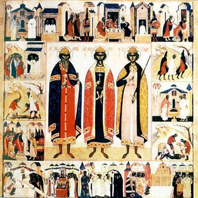 Расскажите кратко о Виленских мучениках Антонии, Иоанне и Евстафии. Они жили при литовском князе Ольгерде (по-литовски его имя - Альгирдас), в начале 14 века, когда православная вера здесь только-только появлялась. Ольгерд был женат на витебской княжне, она была православной. У историков есть такое мнение, он тоже тайно принял православие, чтобы жениться на православной княжне, но перед своими подданными он этого не открывал. В Литве тогда было сильно язычество, была партия жрецов, которые поклонялись богу Перуну (по-литовски Пяркунас), это был бог грома, молнии и огня. Поэтому на языческом капище горел неугасимый огонь. В литовском княжестве православные жили и раньше, но мученики замечательны тем, что это люди из княжеской дружины, это элита, высший эшелон, потому, что в то время это были ближайшие люди князя, помощники в делах управления княжеством. Это были двое братьев из дружины, которых звали Кумец и Нежило, которые приняли православие, в крещении им дали имена Иоанн и Антоний. Иоанн был старший, Антоний младший. Они были крещены священником Нестором, который приехал с женой Ольгерда. Они открыто стали исповедовать свою веру, их поведение стало отличаться и конечно это вызвало большое недовольство жрецов, которые требовали от князя, чтобы тот их наказал. Само поведение князя показывает, что, по всей видимости, он сам был христианином, потому что он не хотел их казнить, он посадил их в темницу, в которой они провели целый год. Условия были ужасные и в результате старший брат отрекся. Младший – нет, он остался верен Христу. Тогда князь повелел освободить старшего брата из темницы и он вернулся ко двору, а Антоний остался сидеть в тюрьме. Однако Иоанн оказался в непростом положении. Отрекшись от язычества, он принял христианство, от которого в итоге тоже отрекся. В итоге Иоанна не уважали ни язычники, ни христиане. Брат тоже не хотел с ним общаться из-за предательства, от чего Иоанн очень мучился. В результате он раскаялся, исповедал опять себя христианином, за что его избили и он вернулся к брату в тюрьму. Ольгерд решил казнить Антония. И вот, как раз, 27 апреля по новому стилю – день кончины Антония. Ольгерд надеялся, что Иоанн, увидев кончину брата, опять испугается, отречется и на том все закончится, но Иоанн уже был укреплен и уже не отрекся. Через 10 дней его тоже казнили. Их повесили на священном дубе. Евстафий (в язычестве его звали Круглец) был их родственником, он тоже служил в дружине князя, а пострадал через полгода. Принял крещение от священника Нестора. Пострадал он больше всех, его особенно сильно мучили, вначале жестоко избивали, потом на морозе вливали в рот холодную воду, потом содрали волосы с кожей на голове, потом отрезали нос и уши, перебили ноги, кости до колен. На мощах это очень заметно. Ноги лежат словно неестественные. У него кости перебиты. У других не перебиты. Почему его особенно мучили? Трудно сказать. Наверное, потому, что это был третий такой случай. Жрецы были особенно недовольны. Он ведь был одним из приближенных князя, отличался храбростью, он тоже был казнен на том же дубе. Святые мученики в 1364 году были причислены к лику святых, прошло почти 17 лет после их кончины.