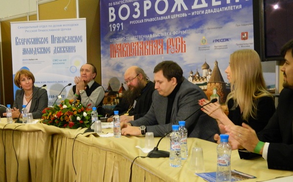 Ток-шоу «Современная молодежь: надежда и опора или потерянное поколение»6 ноября 2011 года в центральном выставочном зале «Манеж» состоялось дискуссионное шоу на тему «Современная молодежь: надежда и опора или потерянное поколение», организованное Синодальным отделом по делам молодежи Русской Православной Церкви. ![]() В мероприятии приняли участие: - Любовь Попова, директор детско-юношеской библиотеки имени Светлова;- Евгений Мартынов, президент межрегионального общественного фонда «Мир Молодежи»; - Вячеслав Спесивцев, художественный руководитель Московского молодежного театра;- игумен Сергий (Рыбко), известный миссионер, настоятель храма сошествия Святого Духа на Лазаревском кладбище; - Юлия Салмина, генеральный директор телекоммуникационной компании «DEVINO Telecom»;- Константин Беремеш, сотрудник Синодального отдела по делам молодежи.