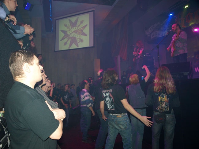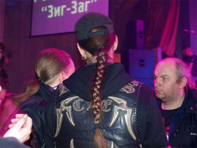 Танцпол, партер, балкон и даже лестница довольно большого клуба «ROCK HOUSE» были заполнены рокерским и байкерским народом всех стилей и возрастов: от детей и подростков до пожилых женщин – чьих-то мам, тоже пришедших поддержать семью музыкантов. Мне не встретилось ни одного пьяного или неадекватного человека. Люди были абсолютно трезвыми, серьезными и, очевидно, во многом глубоко единодушными. Среди прочих колоритных личностей на концерте были замечены представители «Ночных волков» и байк-клуба «Pirates of Winds».